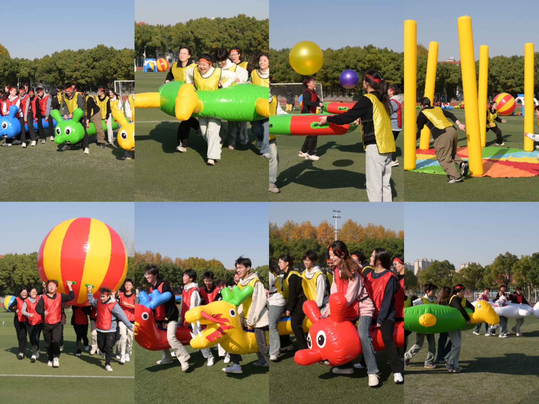 在趣味运动会中,设计学院精心设计了“顶气球”“龟兔赛跑”和“疯狂毛毛虫”等多项趣味项目。这些运动项目不仅考验了同学们的团队协作能力和沟通能力,更让他们在轻松愉悦的氛围中释放压力,展现积极向上的精神风貌。整个赛场气氛热烈,欢声笑语不断,成为了学生们释放压力、增进友谊的欢乐海洋。