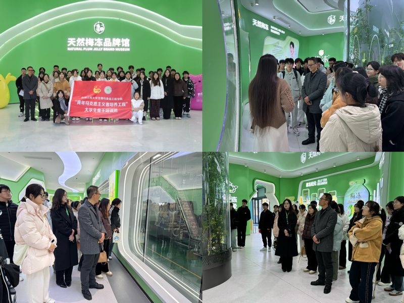 首站抵达溜溜果园集团股份有限公司,师生们在公司负责人和专业讲解员的带领下,步入天然梅冻品牌馆,近距离观察并了解从产品种植、精细采摘到现代化生产、销售的全产业链流程。通过直观体验与深入交流,师生们不仅对企业的运营模式有了全面了解,更深刻洞察到绿色食品产业的最新发展趋势、技术创新动态以及行业对高素质人才的需求标准,为未来的职业规划与学术研究提供了宝贵素材。