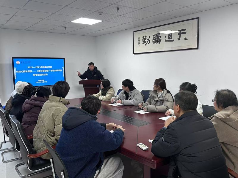 本网讯 12月12日,体育学院组织召开了2024—2025学年第1学期项目式教学课程论证会。体育学院院长胡好、党总支副书记马晓琼参会并担任评审专家。《体育保健学》课程负责人、体育学院副院长金庆红主持认证会。此次会议旨在对本课程中学生科研项目经费进行科学合理的划拨,以确保各项目能够顺利进行并取得预期成果。