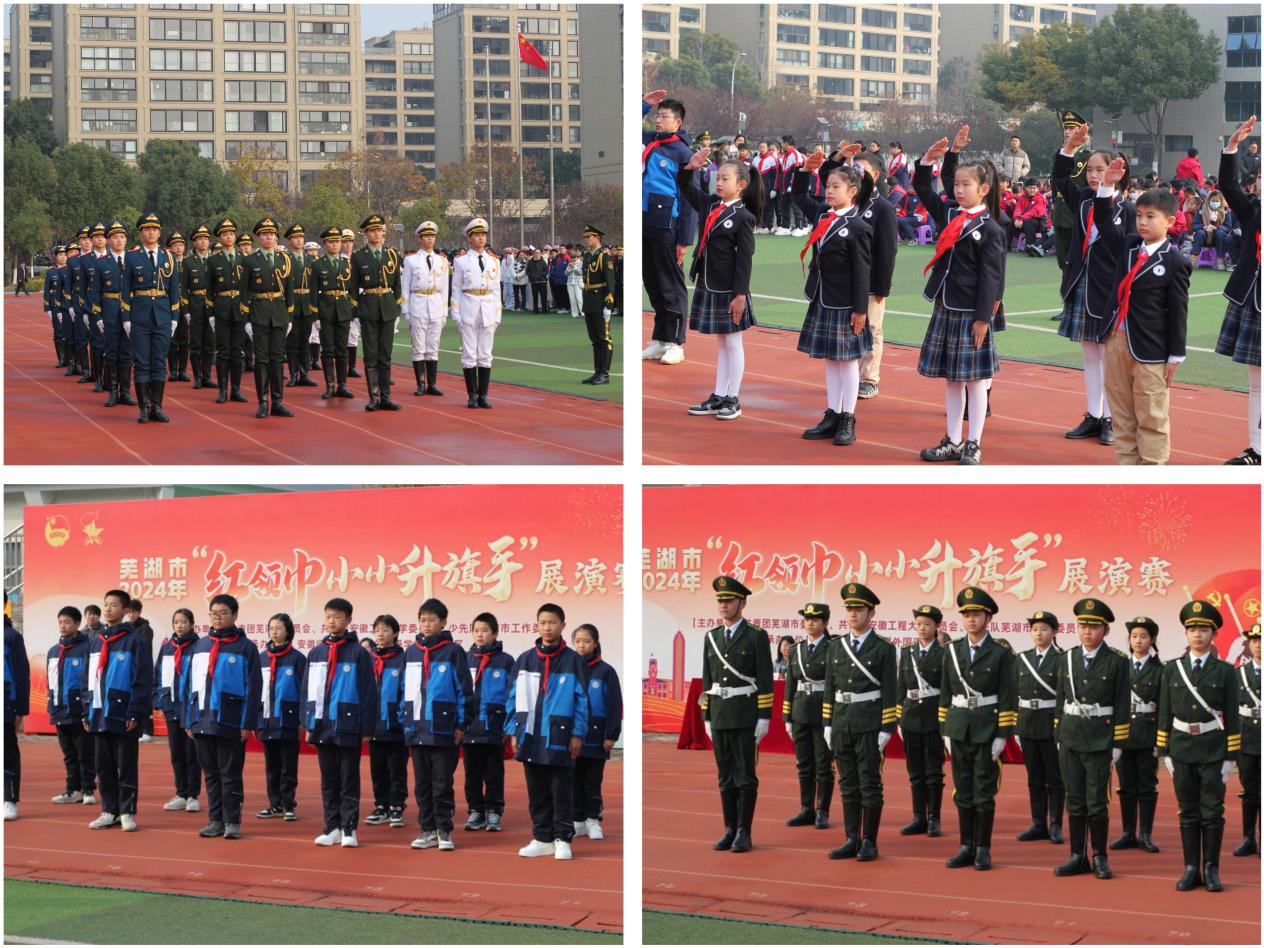 本网讯 为教育引导少先队员传承红色基因,厚植爱国主义情怀,推进大中小学思政课一体化建设,12月13日,校团委开展芜湖市2024年“红领巾小小升旗手”展演赛活动,校团委书记李恒奎,团芜湖市委副书记谢翔宇,第二十八届国旗护卫队以及来自芜湖市14所中小学师生代表参加本次活动。