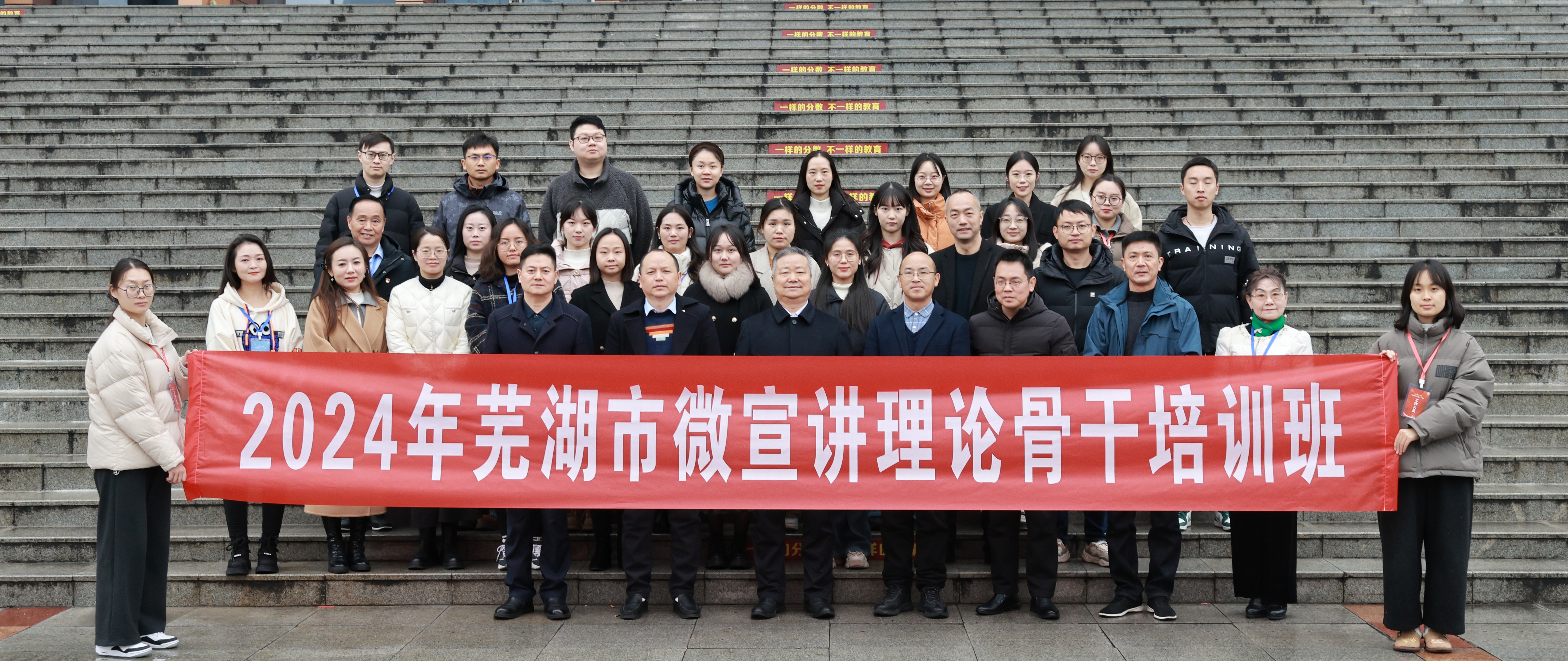 本网讯 为认真学习贯彻习近平文化思想和全国宣传思想文化工作会议精神,发挥芜湖市“学‘芜’止境”理论宣讲联盟品牌优势,培养一批理论水平高、表达能力强的微宣讲骨干队伍,由芜湖市社会科学界联合会(中共芜湖市委讲师团)主办,芜湖市社会科学研究基地(以下简称“研究基地”)承办的2024年芜湖市微宣讲理论骨干培训班于12月11日至13日在我校举行。学‘芜’止境”理论宣讲联盟各宣讲团一线宣讲人员和各县市区委宣传部宣讲人员等近30人参加本次培训。