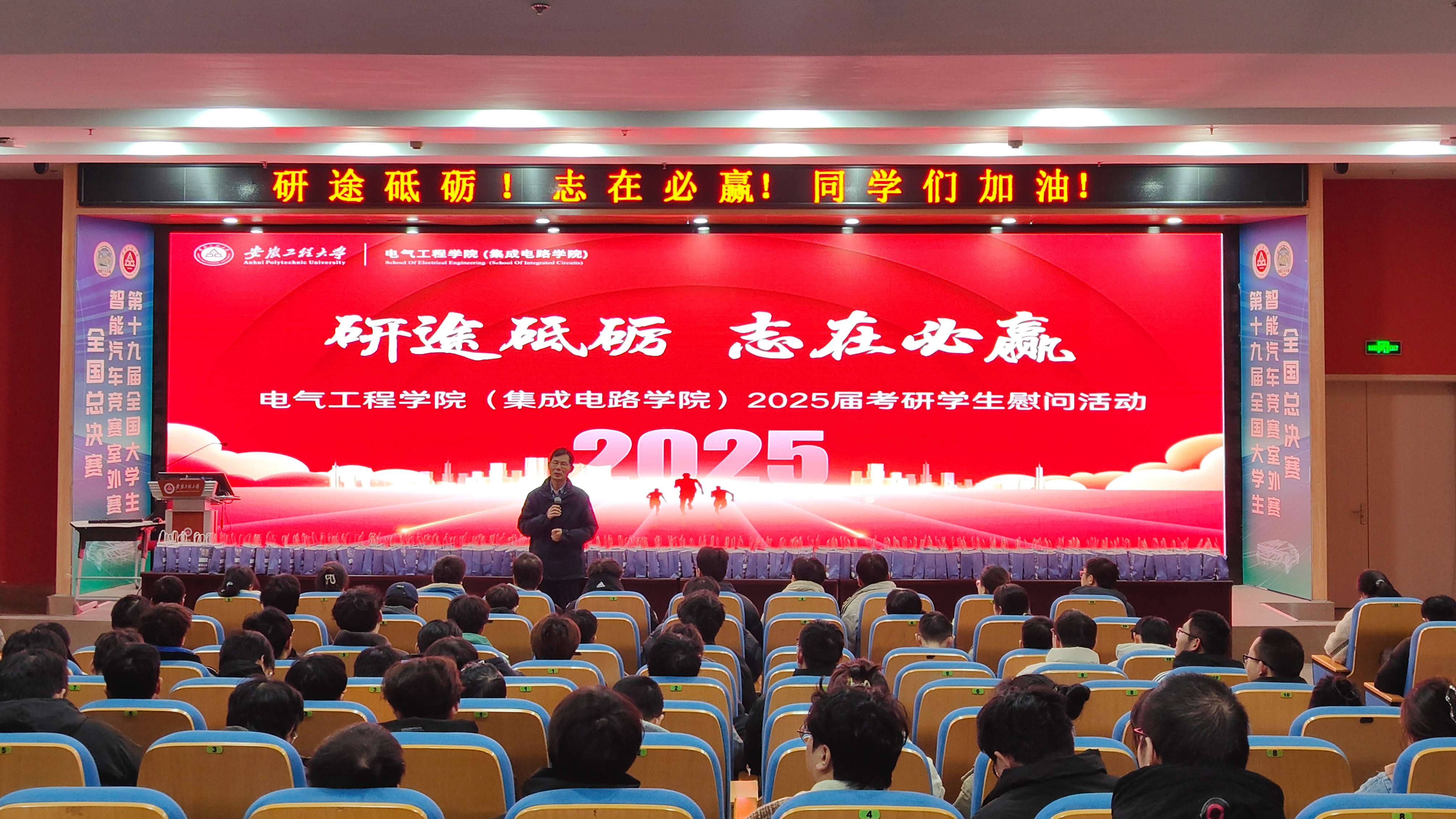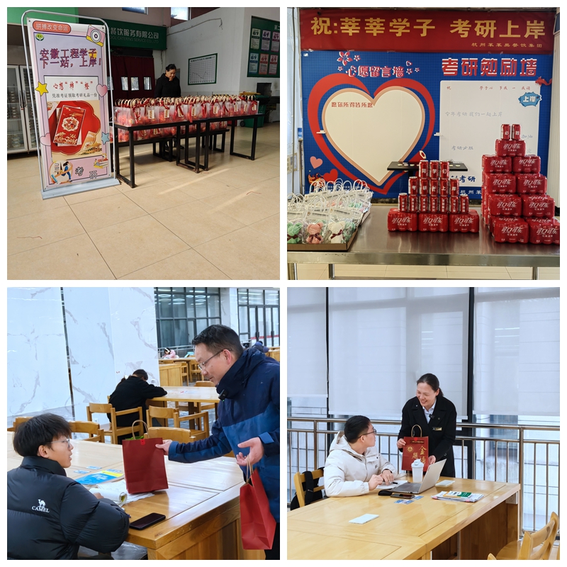 用殷殷之情,做好暖心帮扶。面对考研期间学生心理变化情况,学校搭建起“线下+线上”心理咨询双通道,7×24小时为考研学子提供专业心理咨询服务。进入冲刺阶段,每周定期推送心理健康原创微文,帮助同学们掌握压力缓解技巧,实现自我调适,并在图书综合楼广场举办游园会活动等,让考研学子暂时放下书本,缓解压力。各学院在备考期间用心用情为学生做好帮扶。电气工程(集成电路)学院则安排专人搜集考研信息,助力学生高效、精准复习;材料科学与工程学院则发挥党员与学生骨干的引领作用,组建考研学习小组,共同解决备考难题;体育学院建立考研榜样库,为有疑问的同学搭建沟通桥梁;人文学院和数理与金融学院邀请校心理健康中心老师带来心理舒压专题讲座,经济与管理学院组织老师手写祝福加油卡,人工智能学院师生创作短视频作品《徽程儿女》为同学们减压助威。