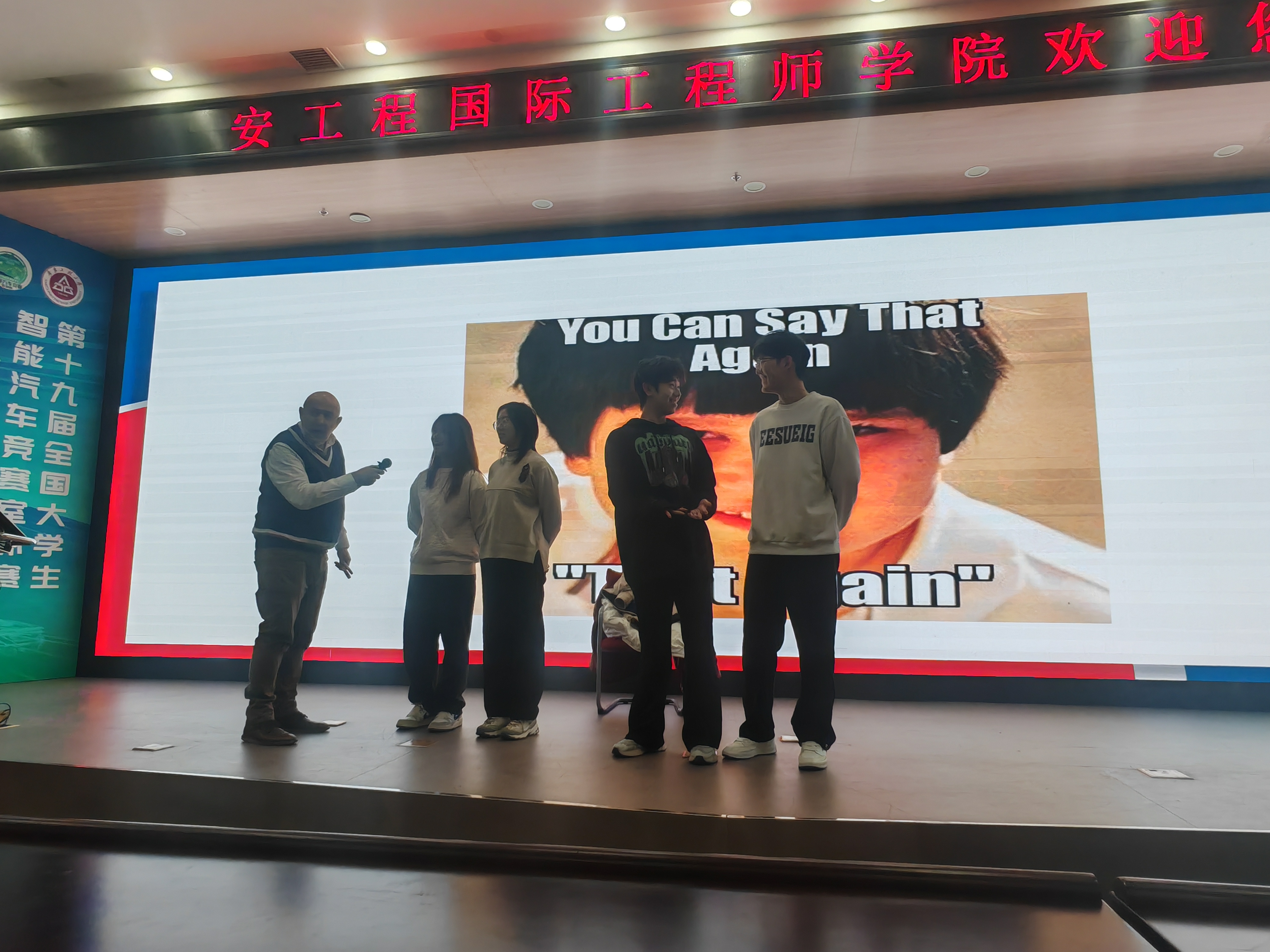 外教Gary以其独特的英式魅力点燃了现场氛围。他用纯正的英式发音、富有感染力的表情和生动活泼的肢体语言,巧妙化解了学生们的紧张感。在轻松愉快的互动环节中,Gary鼓励学生们大胆展示自我,传授“Certainly”“Absolutely”等日常英语表达技巧,帮助学生们更自如地表达思想,全场齐声合唱《Perfect Duet》,悠扬的旋律中饱含着浓浓的英语学习热情。正如电气233班翟博天同学所言:“Gary老师独特的教学魅力,让英语学习变得如此有趣和难忘。”