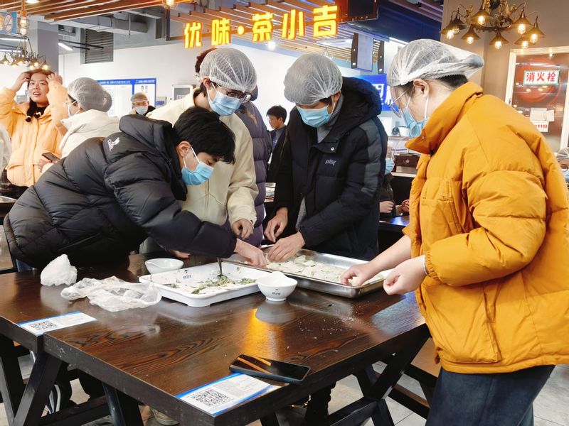 冬至饺意浓,传爱更传情。为传承传统饮食习俗,共同编织冬日温暖记忆。冬至期间,校伙食管理委员会和学生代表在东区食堂和二食堂举办了包饺子劳动体验活动。食堂为学生准备好食材,并指导学生包制饺子,当热气腾腾的饺子出锅时,温暖在每个人心间蔓延。营销231班曹巧巧同学表示:“活动不仅让我们感受到学校的关怀和温暖,也让我们体验到了亲手制作传统美食的乐趣。”