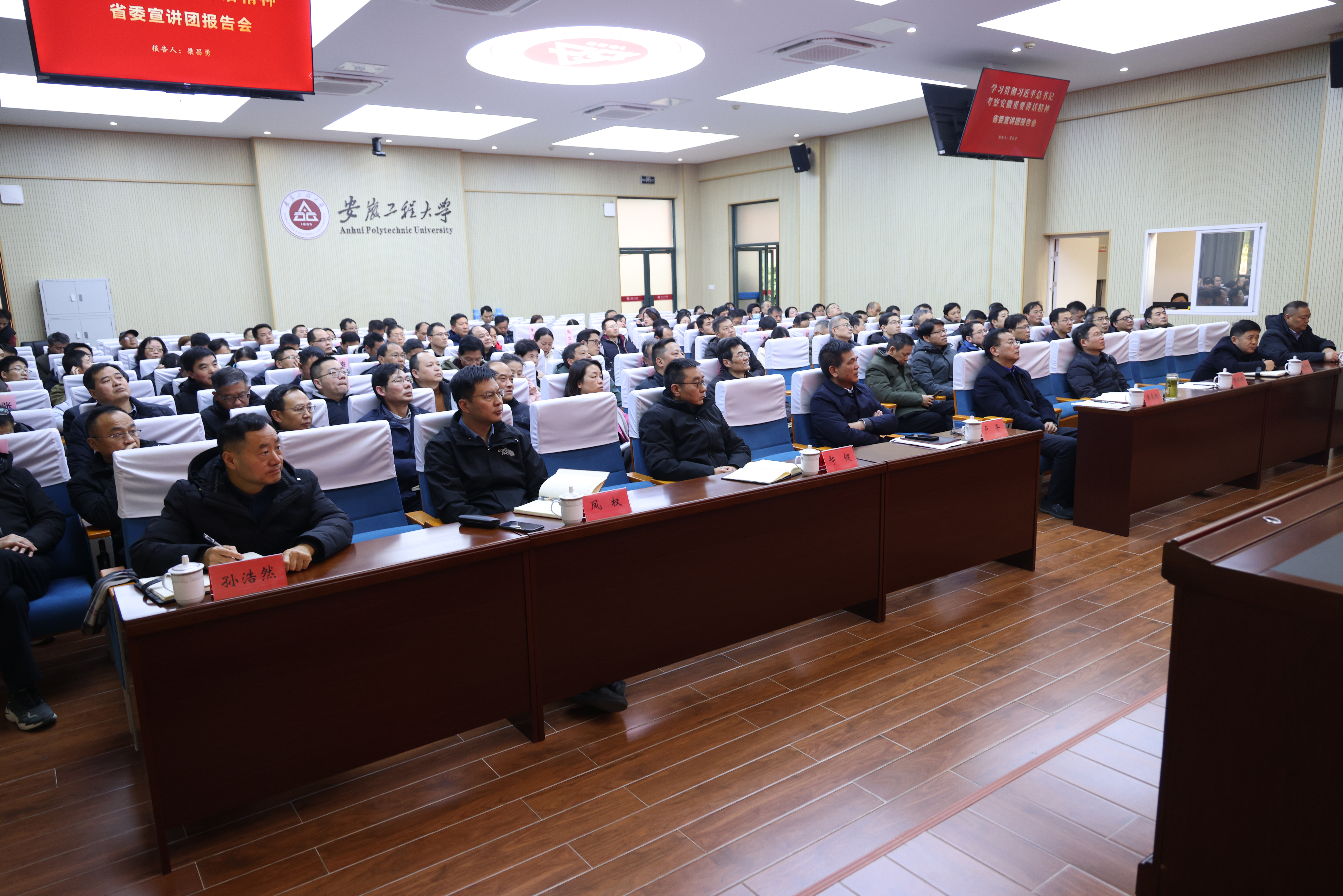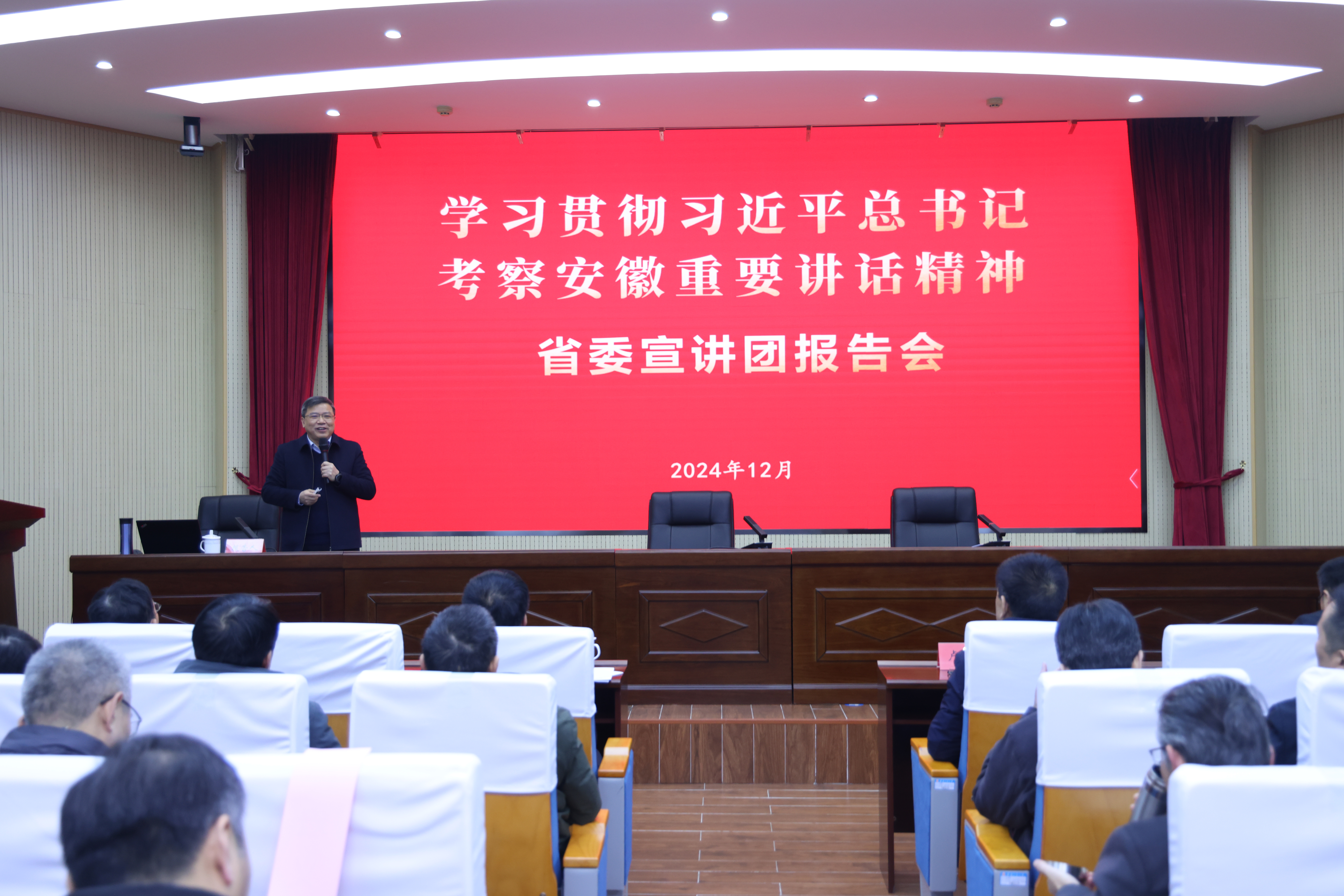 本网讯 为进一步学深、学实、学透习近平总书记考察安徽重要讲话精神,丰富理论学习中心组学习形式,12月24日,学校在A座104会议室举行学习贯彻习近平总书记考察安徽重要讲话精神“社科名家大巡讲”宣讲报告会暨校党委理论学习中心组学习(扩大)会议。会议邀请安徽省管理学会会长、合肥工业大学梁昌勇教授作宣讲报告。校领导、校党委理论学习中心组成员、全体处级干部、校社科联代表、思政课教师代表、师生代表参加,会议由校党委书记卢平主持。