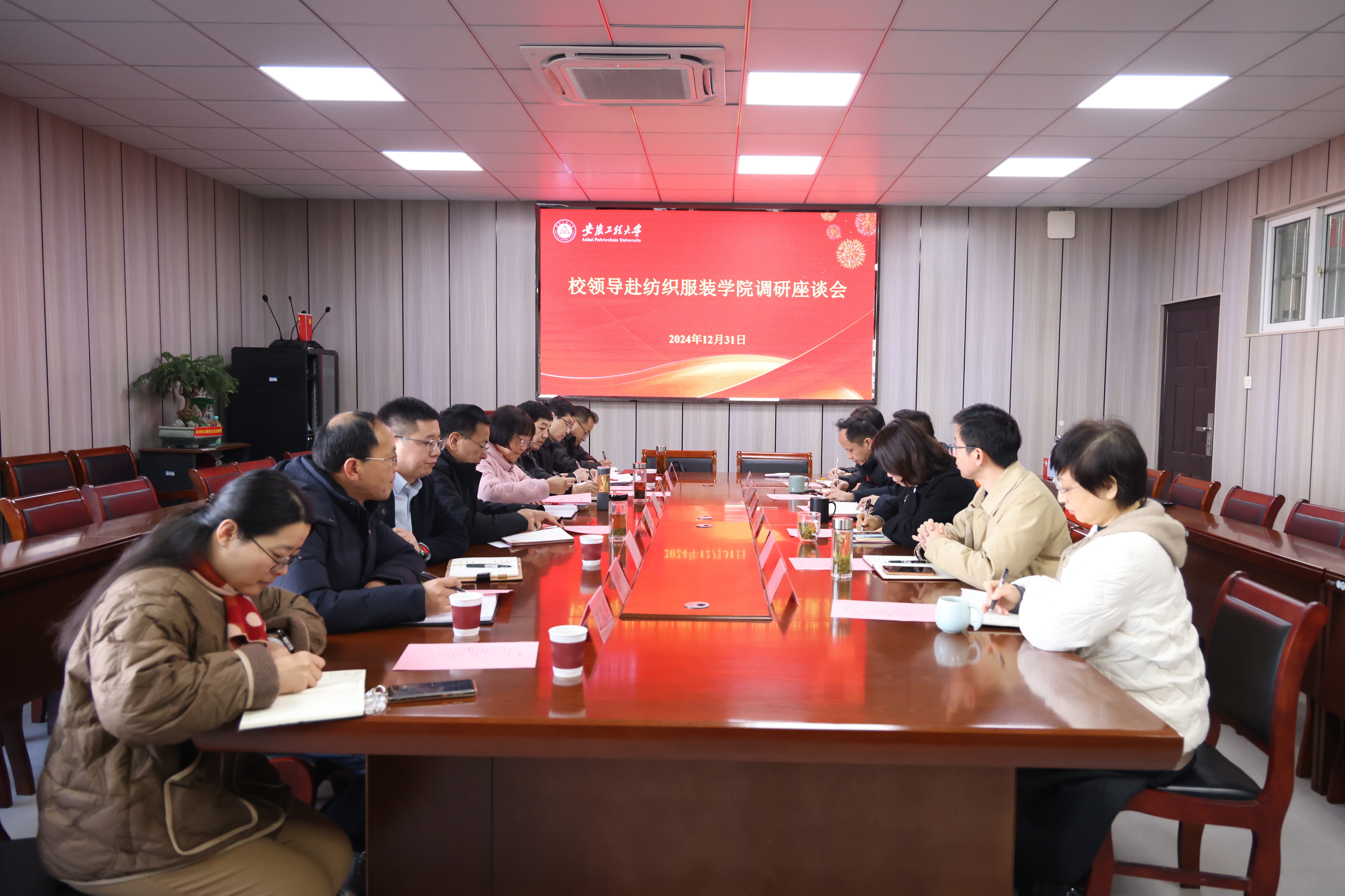 本网讯 12月31日,校党委副书记、校长黄友锐,副校长周虹屏带队赴纺织服装学院调研指导工作,办公室、人事处、国资处、教务处、研究生部(学科办)、科技处相关负责人陪同调研。纺织服装学院党政领导班子成员参加调研会。