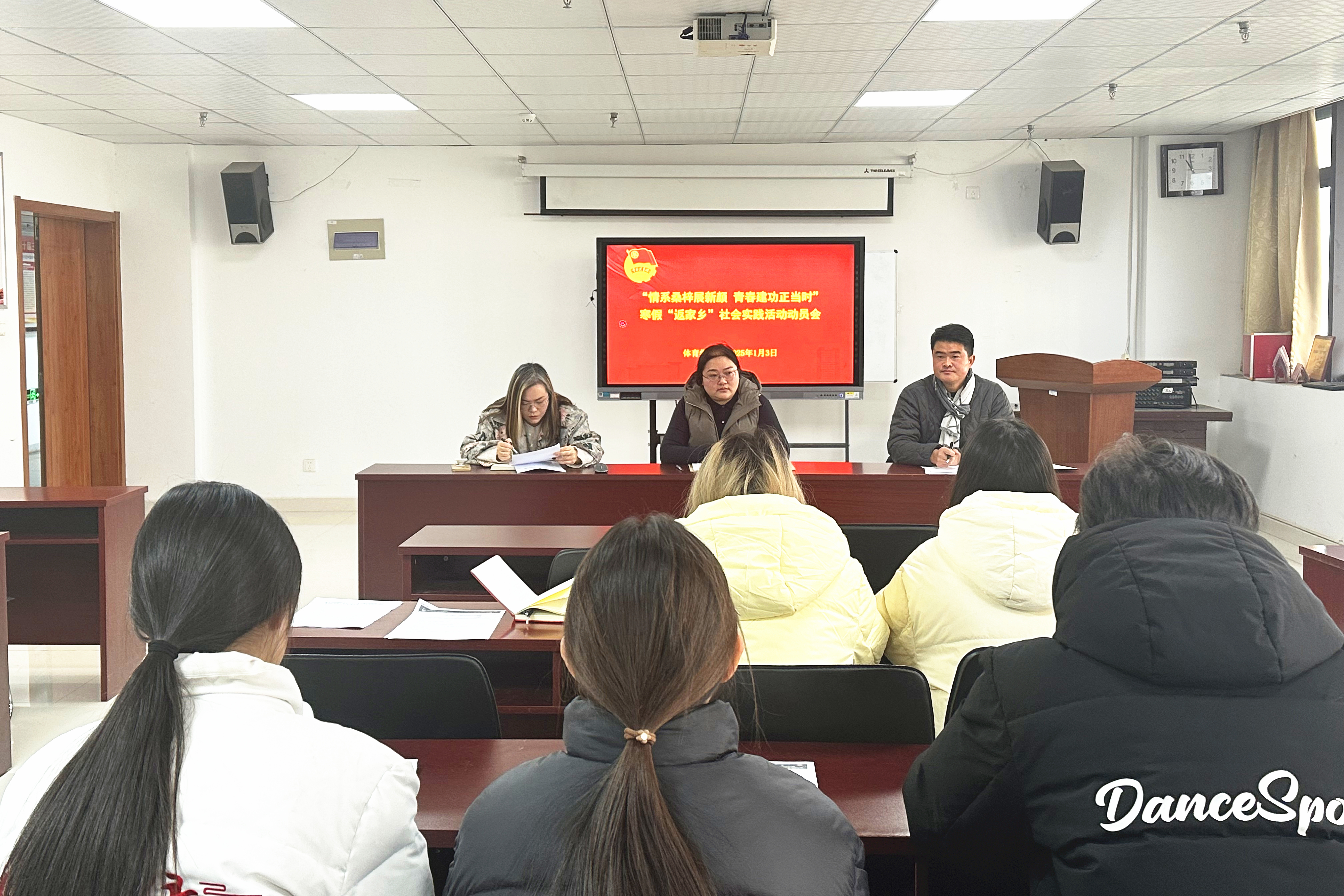 本网讯 为落实好校团委《关于开展“情系桑梓展新颜 青春建功正当时”寒假“返家乡”社会实践活动的通知》要求,扎实推进“三全六专”育人实践,体育学院在415会议室召开2025年寒假“返家乡”社会实践活动动员会。学院党总支副书记马晓琼、院团委书记范同军、辅导员黄蓉静参加会议。会议由范同军主持。