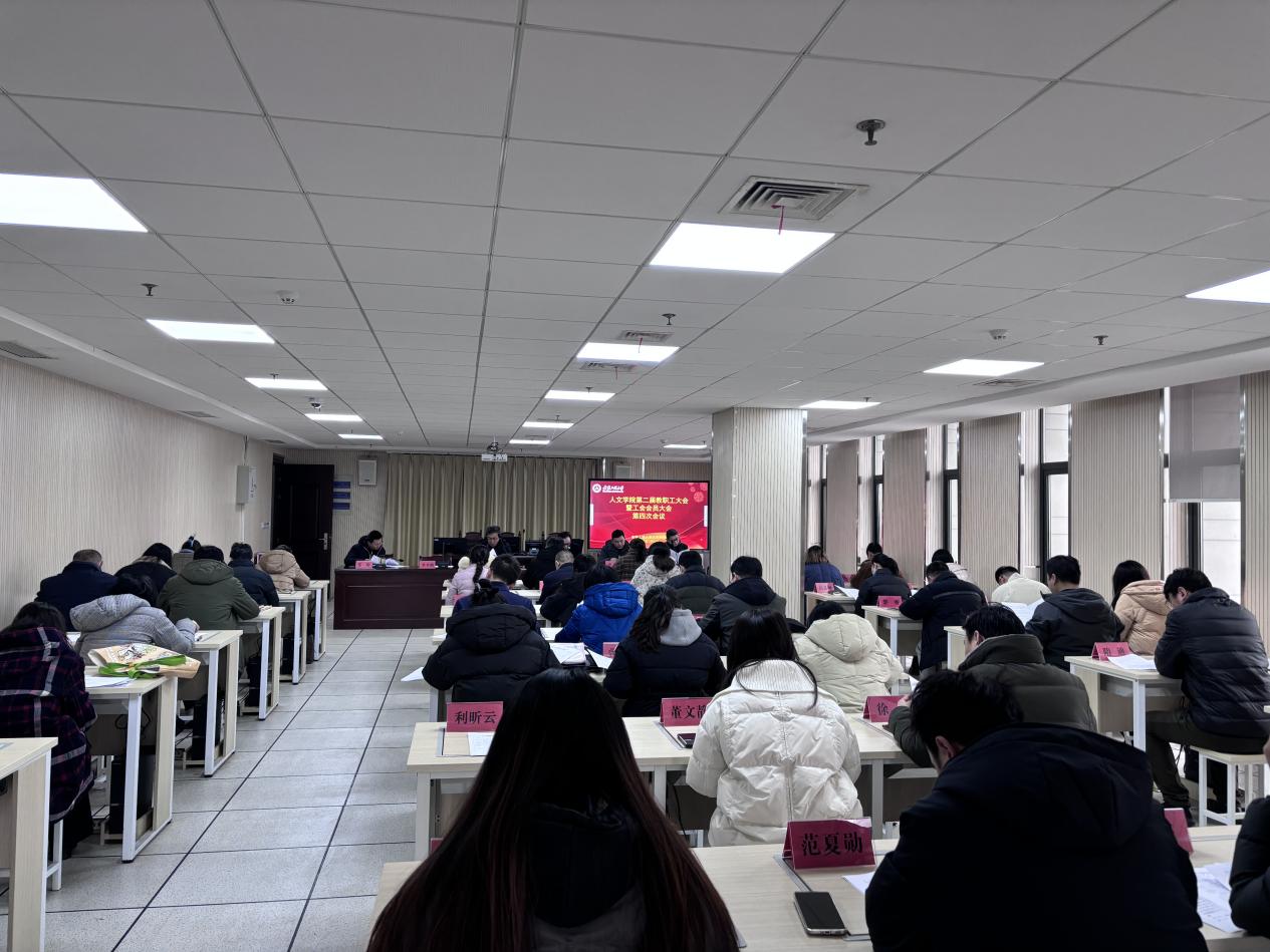 全体人员听取了院长刘军代表学院作题为《标准再提高 方法再创新 成果再突出 推动学院事业迈上高质量发展新阶段》的工作报告。报告对2024年度工作进行总结,并结合学校重点工作指出2025年的主要任务。他指出,各位老师要在其位谋其政,切实担负起神圣使命,立足新起点、开启新征程,聚势谋远、砥砺前行,为实现学院高质量发展打牢基础、凝聚力量。会议审议了工会工作报告《凝心聚力 用心服务 围绕学院高质量发展努力奋斗》,审议通过《人文学院高教系列高级专业技术职务评审推荐实施细则(修订)》。