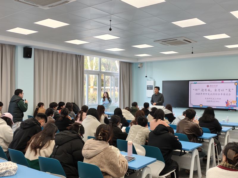 本网讯 为助力广大考研学子深入了解考研复试流程,明确备考方向,掌握关键技巧,3月19日,由党委研究生工作部主办,校研究生会承办的2025年考研复试经验分享座谈会在2教102成功举办。本次分享会邀请到研究生招生与就业科科长宋歌老师与三位优秀研究生代表做经验分享。活动吸引了近百名即将参加复试的考研学子的积极参与。