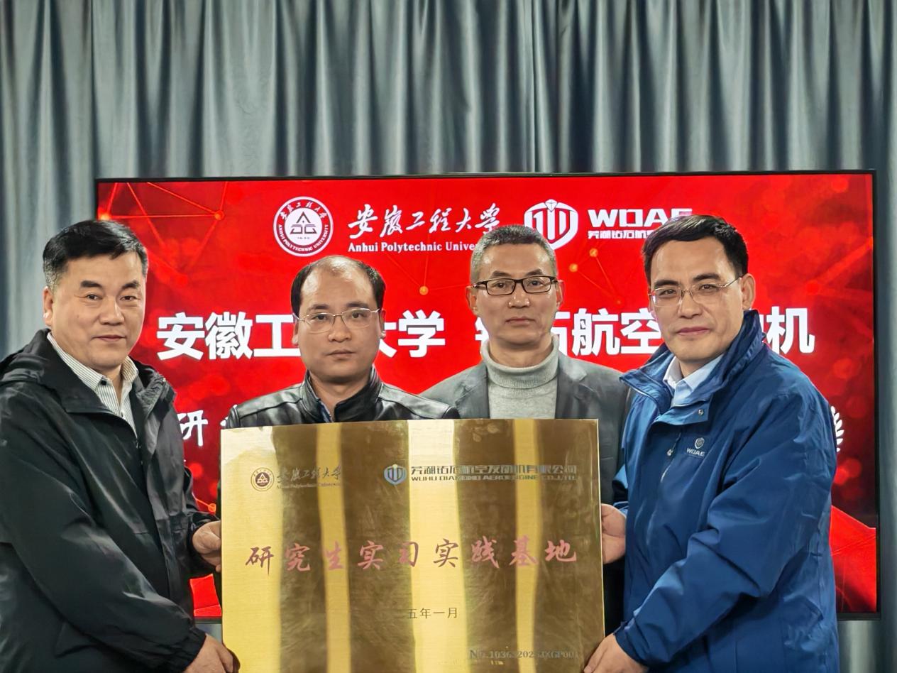 公司总经理郑君详细介绍了公司自成立以来,在民用航空动力方面实现燃油系统、电控系统、增压器、预热系统四大核心部件国产化并取得适航认证的研发历程。系统总结了双方前期合作成果,对两名硕士研究生在公司实习期间的表现给予了高度评价,提出了校企双方在“共筑产业高地”“共育高素质人才”“共享创新成果”三个方面深层次合作的愿望,并就依托湾沚区产业研究院开展的研究生实习基地建设及产学研项目合作给出了建设性的意见建议。