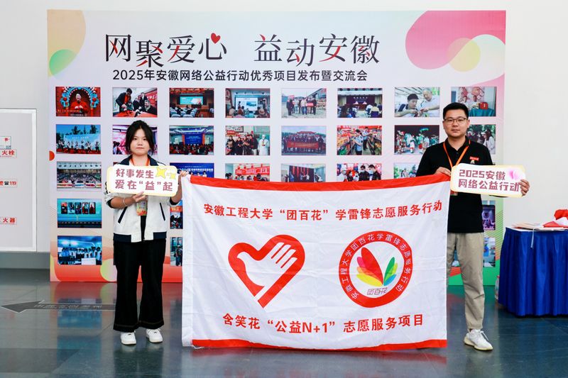本网讯 9月22日,安徽省委网信办在安徽省美术馆召开“网聚爱心·益动安徽”2025年安徽网络公益行动优秀项目发布暨交流会,对全省15项具有代表性、示范性和影响力的公益项目予以表扬。我校材料科学与工程学院“含笑花‘公益N+1’困境儿童帮扶平台”入选,也是安徽省教育系统唯一入选的项目。