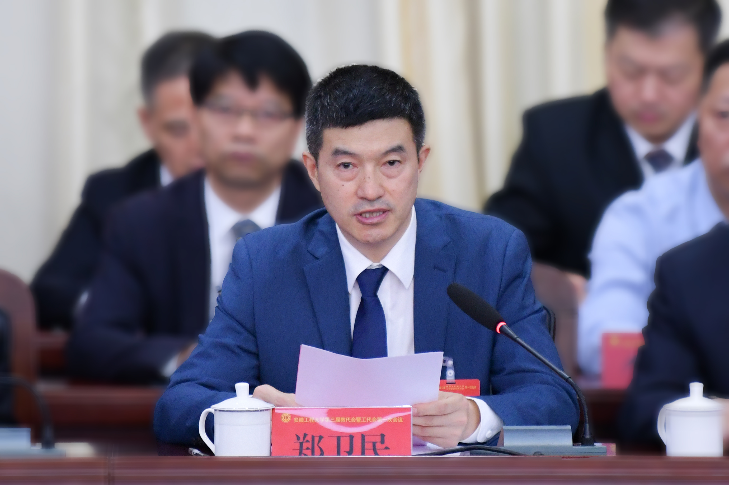 郑卫民代表安徽省教科文卫体工会向大会的召开表示祝贺,并充分肯定了我校自上一届“两代会”以来取得的成绩。他指出,安徽工程大学工会在民主管理、权益维护等方面取得显著成效,为全省教科文卫体系统工会工作提供了宝贵经验和示范引领。希望安徽工程大学工会继续聚焦主责主业、履职担当展现新作为,锚定发展目标、接续奋斗开创新局面,勇担先行使命、打造工会工作新标杆,为推进教育强省建设、谱写中国式现代化安徽篇章作出更大贡献!