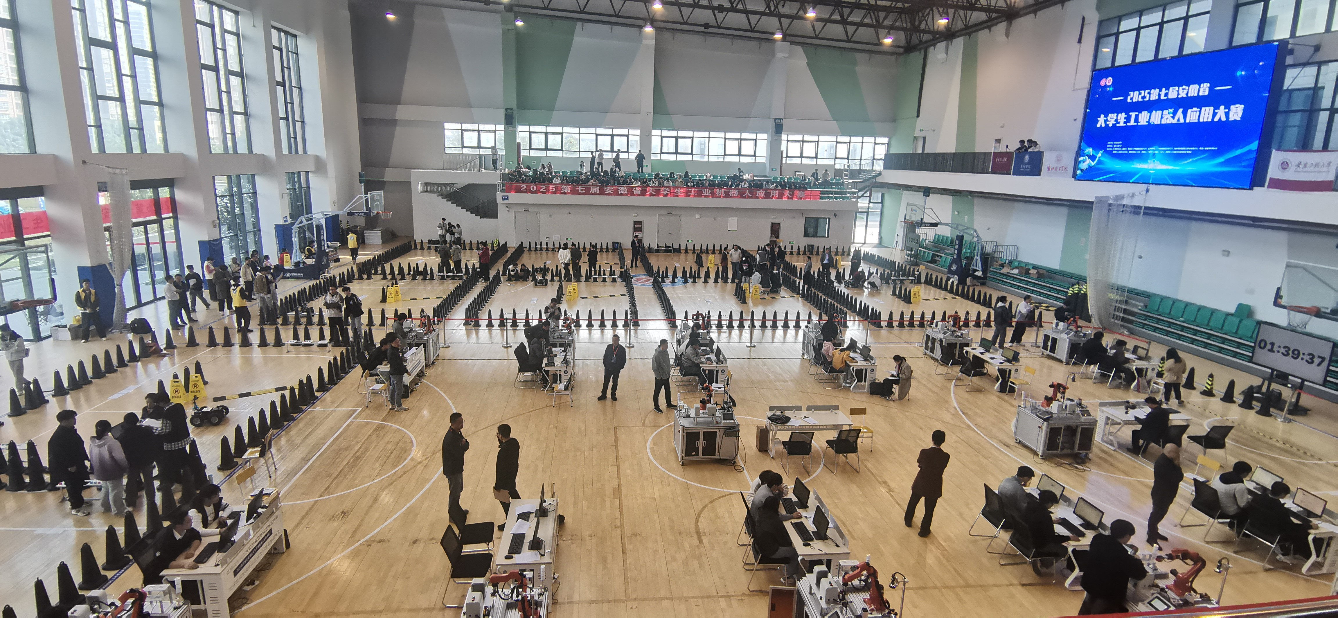 本届大赛吸引了来自安徽大学、安徽理工大学等20所高校近400名师生参赛。本届大赛聚焦产业实际需求,设置工业机器人智能产线设计、工业移动机器人、工业机器人创新设计三个赛道,成功实现赛道增设、内容更新,竞赛模式更加灵活,参赛规模进一步扩大,更加注重考查选手的工业机器人技术应用能力和创新能力,为全省高校师生提供了一个良好的交流学习平台。