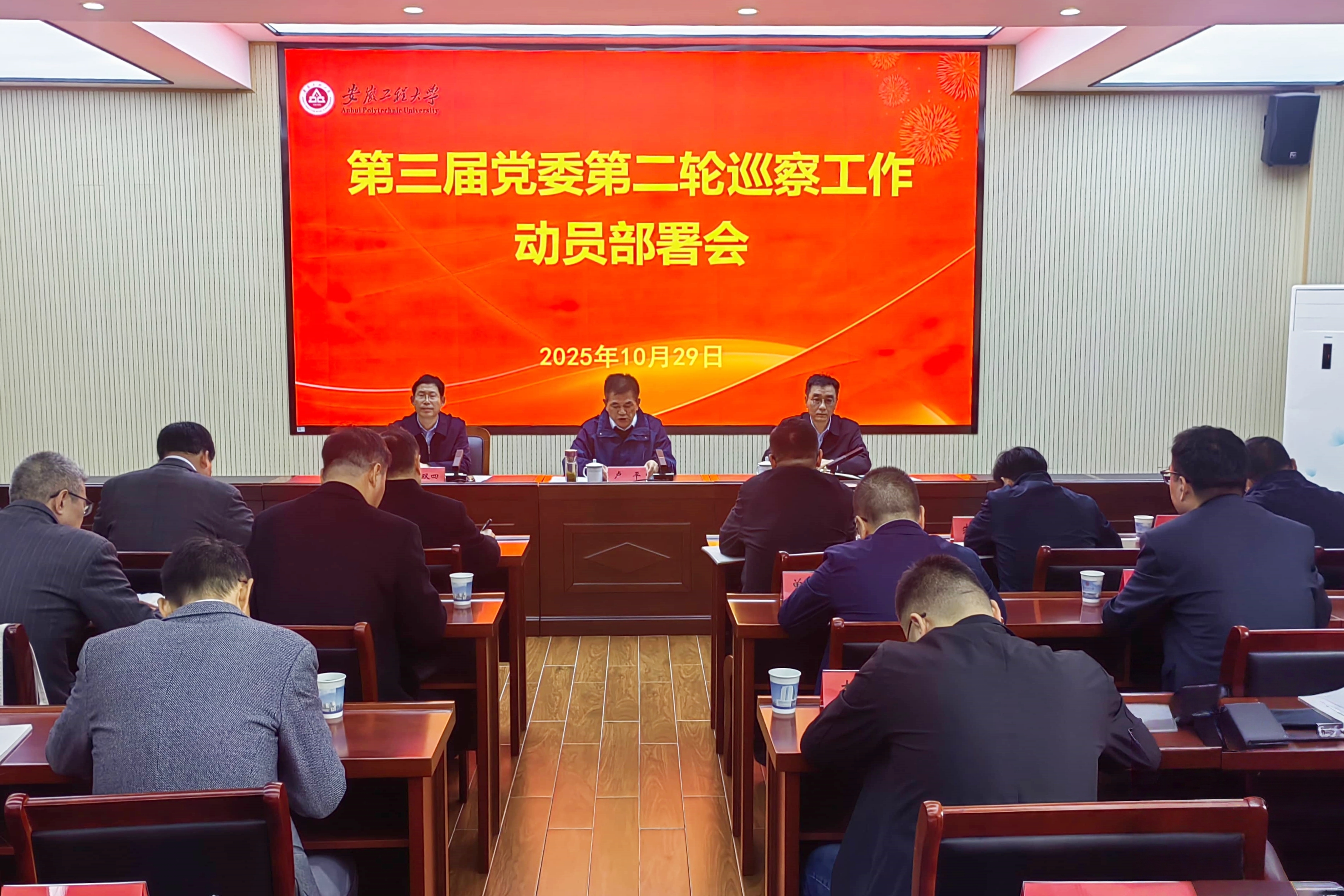 本网讯 10月29日,学校党委在A座1314会议室召开第三届党委第二轮巡察工作动员部署会。校党委书记、巡察工作领导小组组长卢平出席会议并作动员部署讲话,校党委副书记、巡察工作领导小组副组长郑健宣布巡察组任职授权和任务分工,校党委常委、纪委书记、监察专员、巡察工作领导小组副组长程双四主持会议。