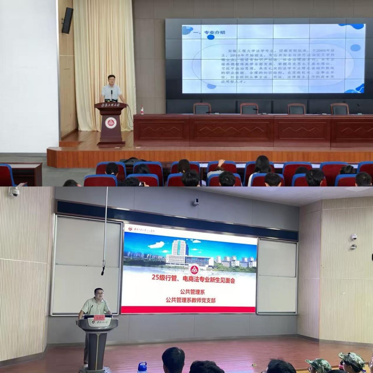 9月13日至16日,学院组织新生开展专业介绍。法学系、公共管理系负责人曹刚果、方浩伟分别聚焦法学、行政管理和电子商务及法律等专业的培养特色、课程师资、就业前景及实践平台,助力新生明晰专业内涵,强化专业认同感和学习信心。
