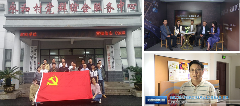 与企业党支部、社区党委开展联学共建,共享党建经验、联合开展主题党日活动。组织党员教师深入乡村等开展高标准农田建设、乡村规划设计等志愿服务,为地方基础设施建设提供技术支持。与湾沚区六郞镇永和村达成“大学小镇”全域党建共建协议,助力“和美乡村”建设。党员教师接受媒体关于专业技术方面的专访活动,宣传土建行业相关法律法规和专业技术知识,提升了我校土木工程专业学科知名度。