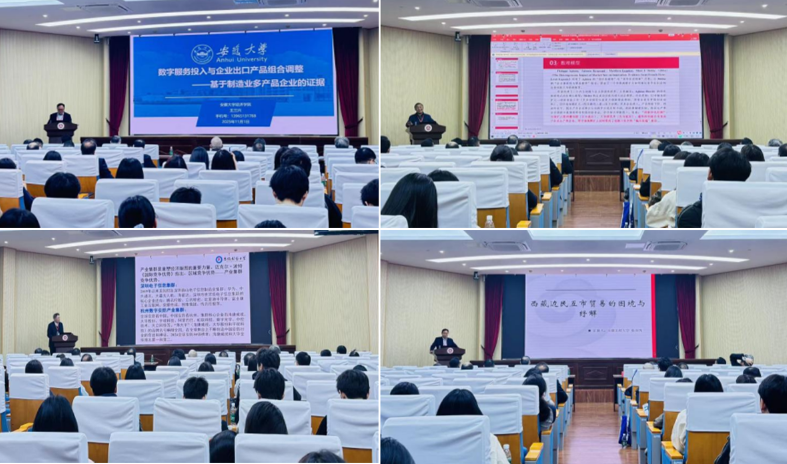 专家报告环节,安徽大学王三兴教授、合肥工业大学张先锋教授、冯德连教授、安徽工程大学蔡书凯教授分别围绕《数字服务投入与企业出口产品组合调整》《数据跨境流动壁垒如何影响制造业技术创新质量》《长三角培育世界级先进制造业集群的优势与路径》《西藏边民互市贸易的困境与疏解》等议题展开分享。