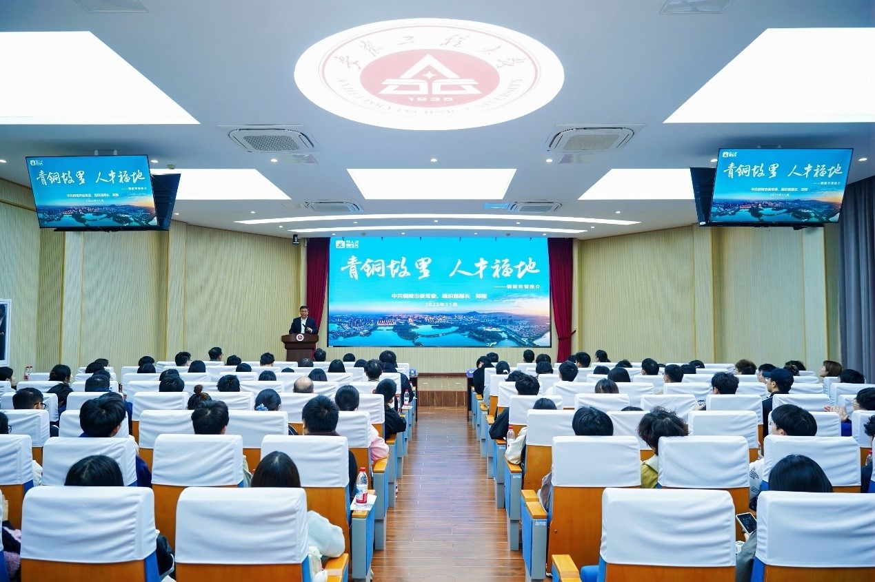 本网讯 11月13日,铜陵市2025年“招才引智高校行”活动在A座104报告厅举办。铜陵市委常委、组织部部长郑刚率团来校招贤纳士,与我校师生共话合作、共谋发展。活动开始前,校党委书记卢平,校党委副书记、校长黄友锐与郑刚一行进行了见面会谈。校党委常委、副校长张开炳,学校相关职能部门负责人,学生代表参加活动。