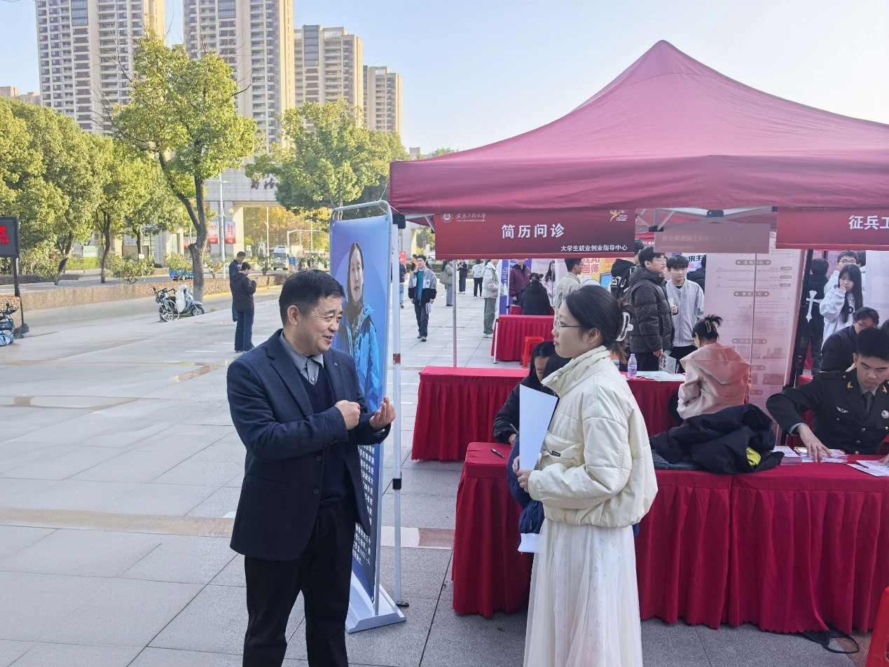 本网讯 九秩薪传,砥砺初心如磐;工业报国,矢志宏业长青。为充分汇聚校友资源与智慧,促进毕业生高质量充分就业,11月26日,学校在图书综合楼广场举办2026届毕业生校友专场双选会,校党委常委、副校长张开炳深入招聘会现场指导就业工作。