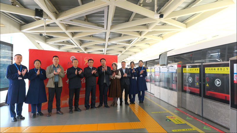 本网讯 12月1日,90周年校庆专列开通仪式在梦溪路单轨站举行。校党委副书记郑健、芜湖市运达轨道交通建设运营有限公司副总经理魏巍等双方代表出席仪式,共同见证这一时刻。