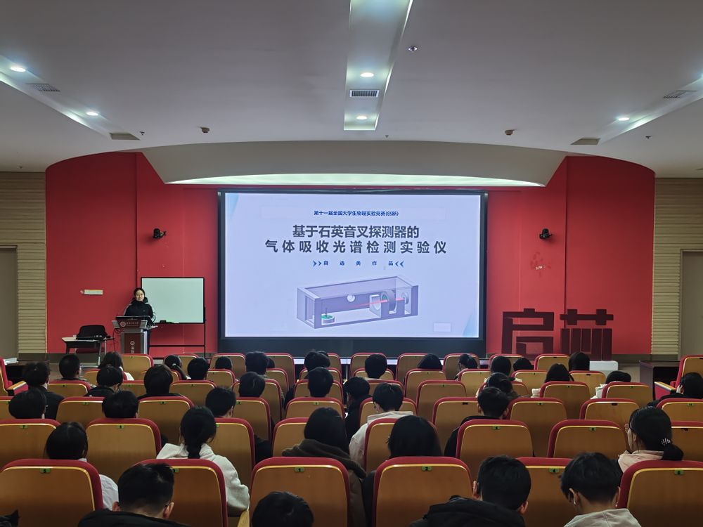 在朋辈分享环节,2025年全国大学生物理实验竞赛一等奖获得者、通信243班吴皓月生动讲述了备赛参赛的全过程,从选题、实验到答辩,分享了实战经验与心路历程,为在场同学提供了宝贵借鉴。