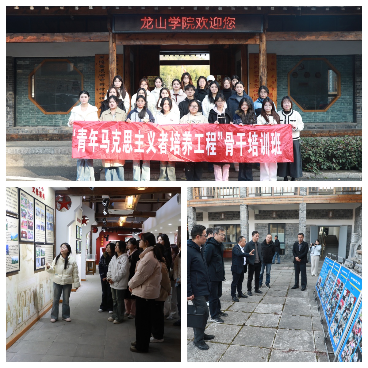 仪式结束后,人文学院向龙山村捐赠了爱心物资。与会人员共同观看了2025年龙山暑期爱心学堂图片展,参观了龙山学院党建馆。