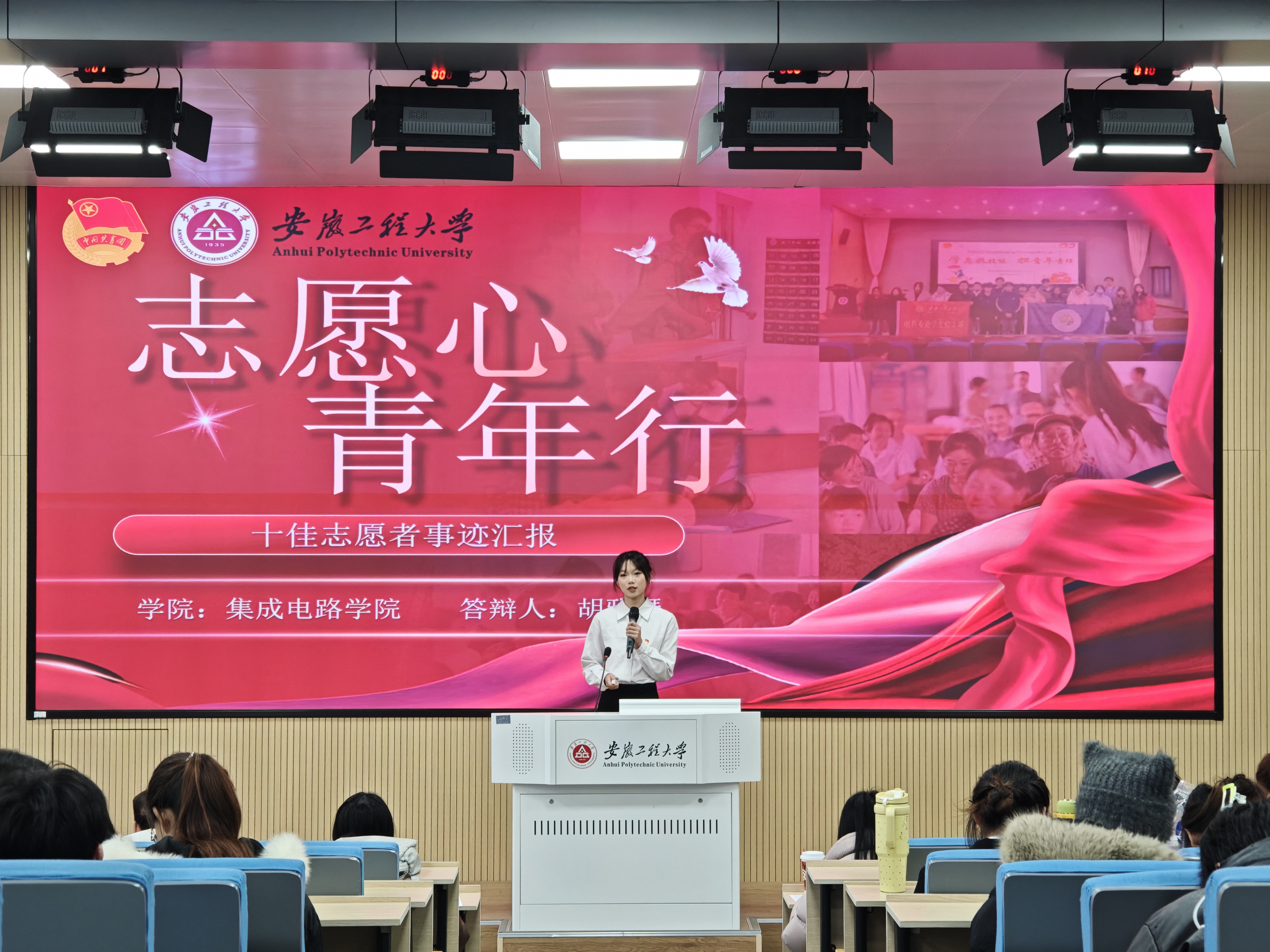 本网讯 12月24日,2025年度“十佳青年志愿者”评选答辩活动在5J217教室顺利举行。团芜湖市委学少部部长钱泽慧、团镜湖区委书记张玮玮、团鸠江区委四级主任科员杨洁、中共芜湖市镜湖区委社会工作部党务工作者(校2024年西部计划志愿者)王鑫、校团委学生兼职副书记秦孟飞担任评委。