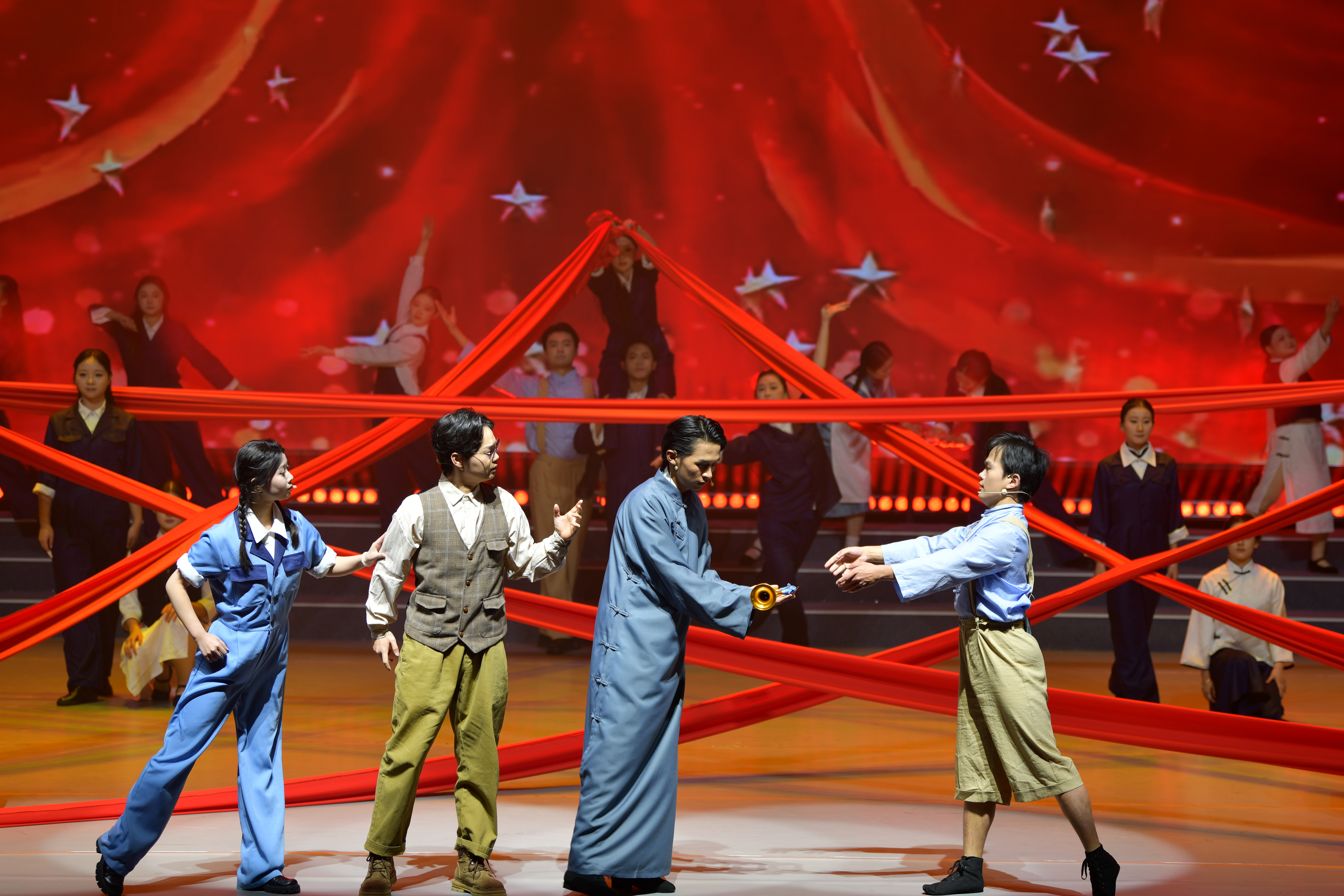这是一部跨越时空的精神史诗。晚会以校史剧《赤铸长歌》贯穿始终,从校史馆讲解员安程的视角切入,老中青三代角色相继登场,运用“雕塑复活”“时空对话”等艺术表现手法展开了跨越时空的对话,开场舞《薪火之路》气势恢宏,鲜活地再现了学校从“工业救国”到“科教兴国”再到“创新强国”的发展历程。当三代人同台共话初心与梦想时,跨越时空的嘱托与“强国有我,兴校在我”的青春誓言在今日的舞台汇聚。