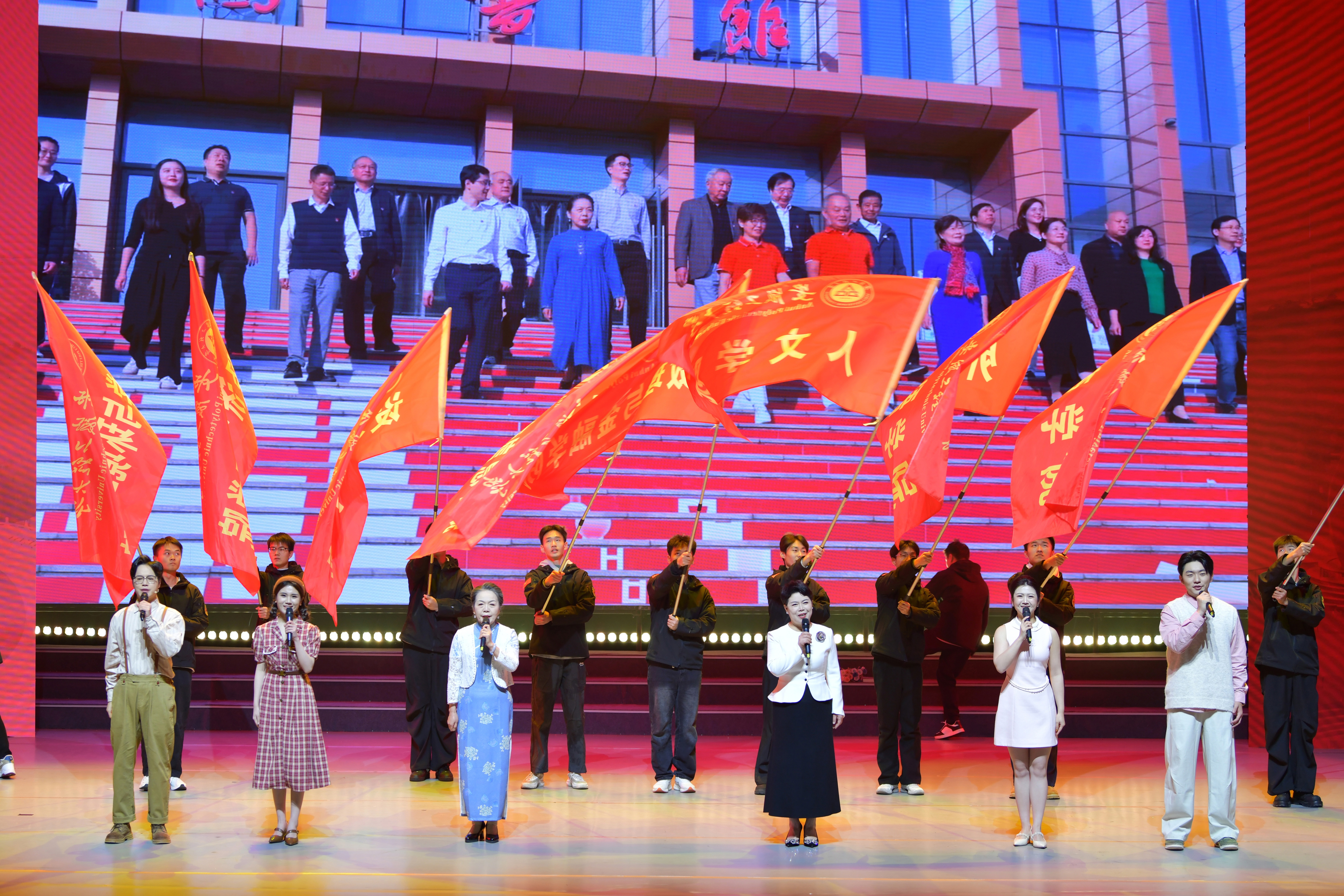 文艺晚会以“九秩正青春 逐梦启新程”为主题,通过“长河溯源 时空重逢”“雨耕勤作 砺器启明”“春风化雨 桃李芳荣”“深稽博考 赤铸精工”四个篇章,精彩演绎了学校九十年的奋斗历程。