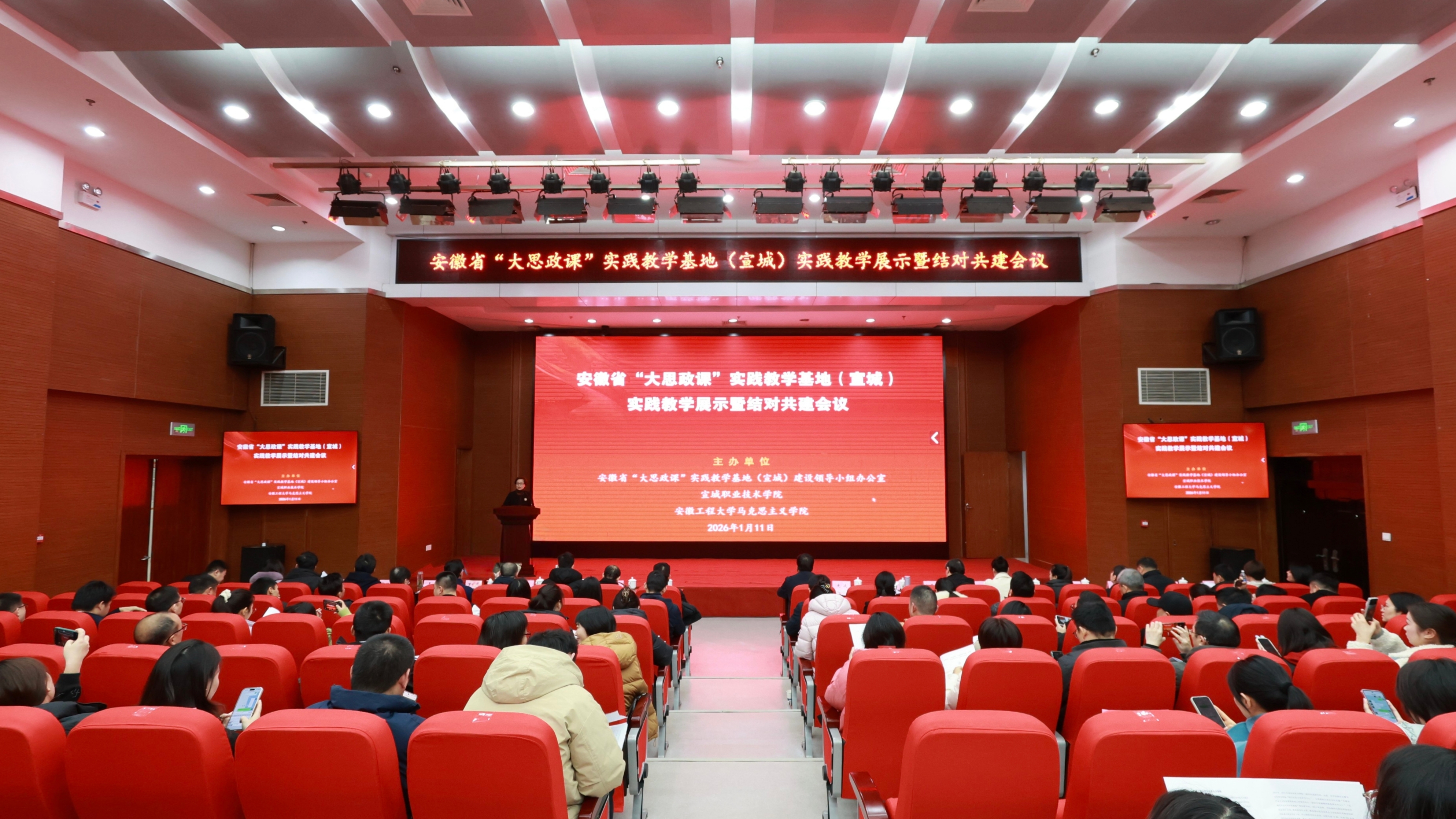 本网讯 1月11日,安徽省“大思政课”实践教学基地(宣城)实践教学展示暨结对共建会议在宣城召开。安徽省委教育工委思政处处长、一级调研员王后林,宣城职业技术学院党委副书记、院长庞波,安徽工程大学党委副书记郑健,宣城市教体局党委委员、副局长李旻出席会议。安徽省高职高专院校重点马院负责人、基地教学点负责人、课程设计项目负责人,宣城职业技术学院、安徽工程大学师生代表参加活动。