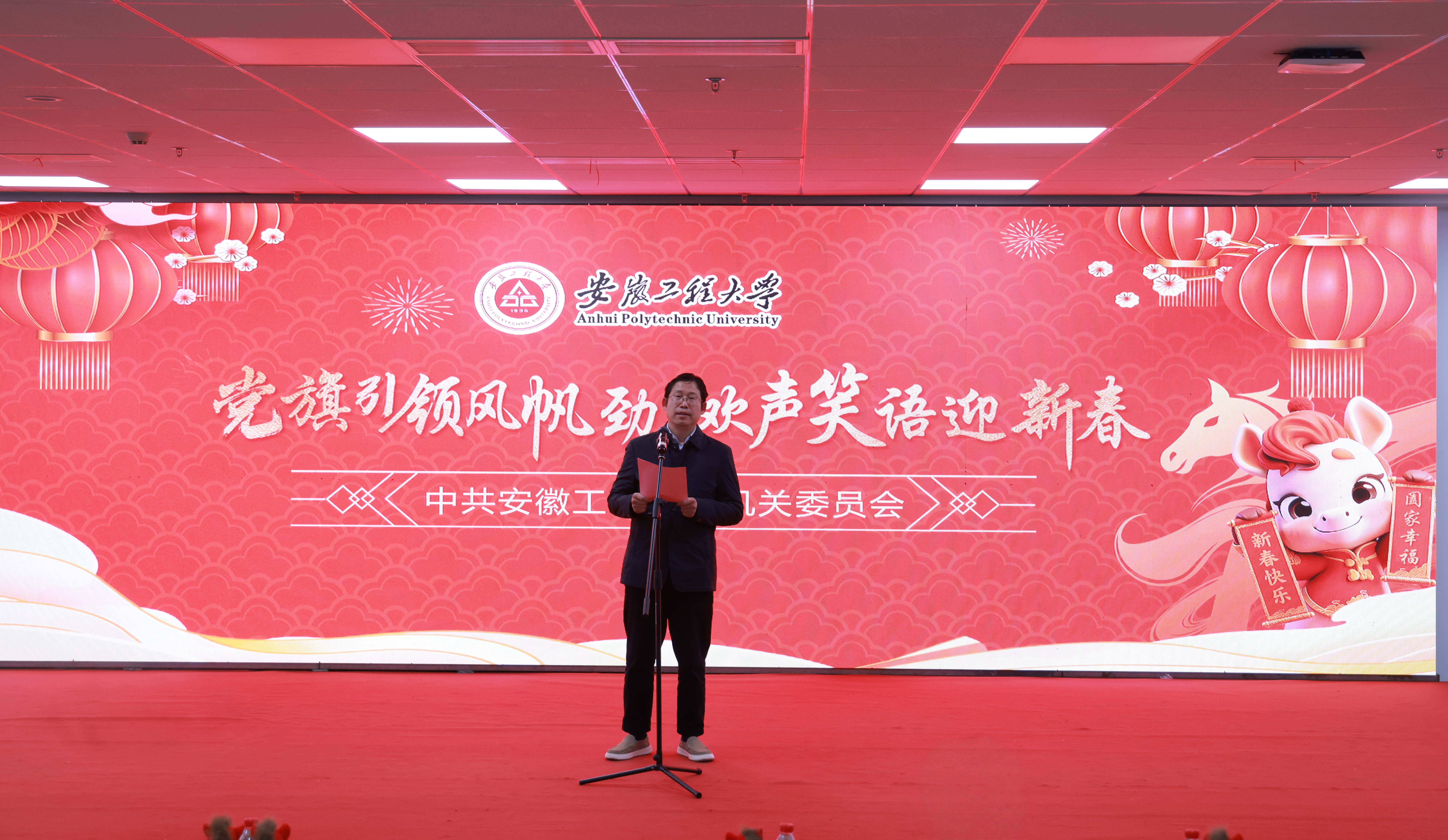 本网讯 新春将至,万象更新。为进一步凝聚机关奋进力量,激发干事创业热情,1月22日,机关党委举办“党旗引领风帆劲 欢声笑语迎新春”主题活动。校党委常委、纪委书记、监察专员程双四,校党委常委、副校长凤权,校党委常委、副校长张开炳,机关各部门负责人、全体教职工参加活动。