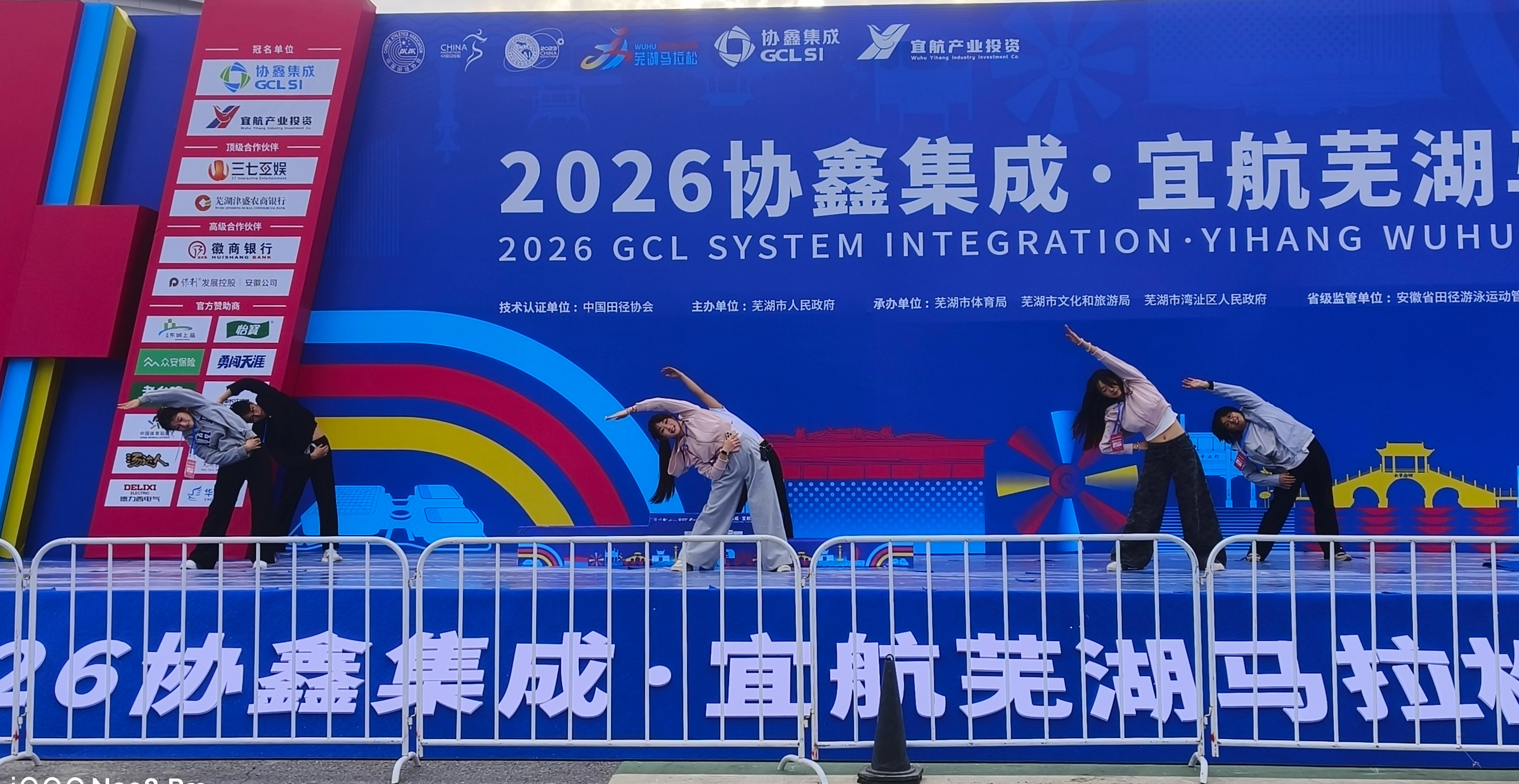 本网讯 3月29日,2026年芜湖马拉松鸣枪开跑。体育学院表演专业学生党支部、“尚体勤行”志愿团学子以多重身份深度参与赛事服务,凭借专业素养与青春活力,为赛事增添了别样光彩。