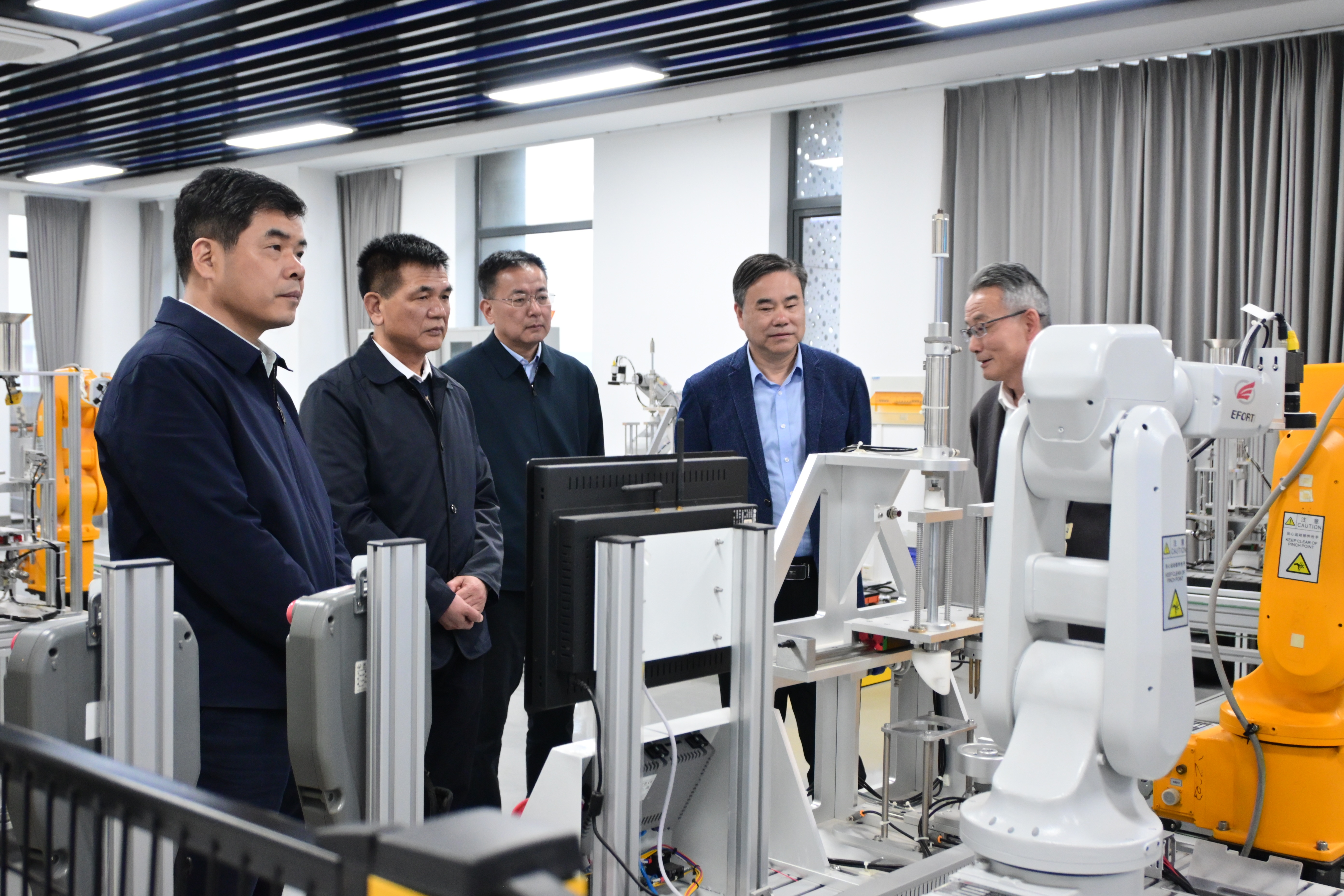 调研期间,吴照明一行实地参观了国家级机器人现代产业学院,了解了产业学院的运行机制、校企合作模式及人才培养成效。
