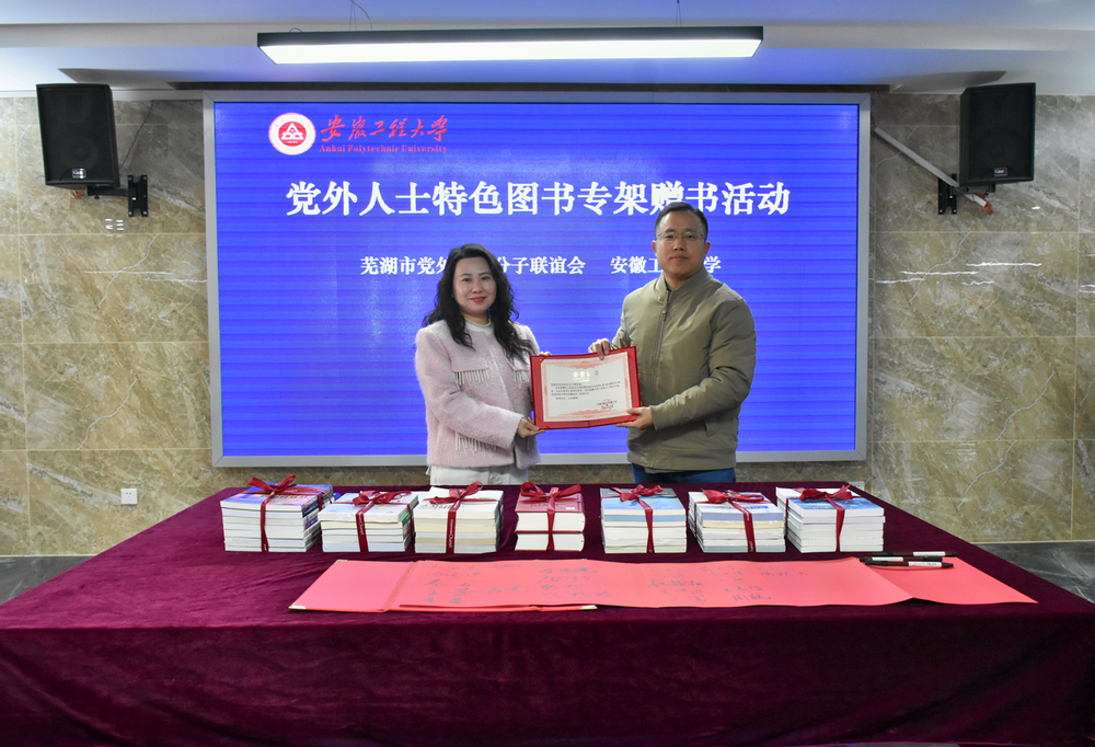 2026年1月16日,安徽工程大学图书馆以“爱心传达,书香致远”为主题的党外人士特色图书专架赠书活动暨芜湖市知联会安徽工程大学工作站授牌仪式在我校图书馆四楼文澜阁举行。副校长王成军,校党委宣传部(统战部)常务副部长王勇智,市委统战部知工科科长李红,市知联会副秘书长邓小琴,芜湖市知联会副会长、校知联会会长刘涛参加活动。活动由安徽工程大学图书馆馆长李琛主持。王成军代表学校向芜湖市知联会的慷慨捐赠表达了感谢。他表示,此次赠书是芜湖市知联会关注教育事业、支持高校发展的生动体现,也是知联会以实际行动践行社会责任、传递知识力量的具体实践,安徽工程大学将以此次捐书活动为契机,进一步深化与芜湖市知联会的合作,为芜湖市经济社会发展贡献“安工程力量”,彰显人民城市建设合伙人担当。李红在致辞中表示,芜湖市知联会与学校知联会始终同频共振、共同前进。她高度评价了此次活动的意义,并对后期合作寄予厚望,期待校地双方携手共进,共同为芜湖市文化繁荣与社会进步贡献力量。刘涛介绍了此次捐书活动背景和工作站设立的情况,她表示,知联会始终秉持“凝聚党外英才、服务发展大局”宗旨,在工作中积极搭建平台、汇聚才智,此次捐书活动,是知