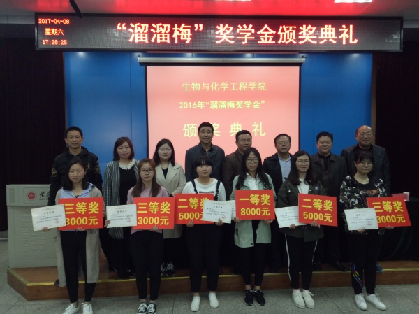 “溜溜梅奖学金”主要奖励卓越农林班学生一年来在德智体全面发展,文化课和综合测评均在本专业、本班级前列,或有特殊专长,在全国或者省级竞赛中获得表彰或者为溜溜梅果园集团做出杰出贡献受到溜溜梅果园集团表彰的学生。首届“溜溜梅”奖学金共有6名15级食品专业的优秀学生获得。卫林、付文静、汪铃获三等奖,陈雪怡、胡舒敏获二等奖,管玲娟获一等奖。