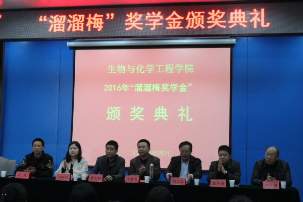 曹安照为溜溜果园集团颁发了溜溜梅奖学金纪念奖杯,他非常感激溜溜果园对于生化学院以及学校的支持,期待未来更加深入的发展和合作。他说,学校80年发展历程中积淀出的诸多突出办学特色之一就是人才培养方面的校企合作模式,它适应了社会的需求,与市场接轨,注重学生实践技能,通过学校与企业信息资源共享达到校企优势互补,实现校企“双赢”。他表示校教育发展基金在未来会充分发挥校企合作办学特色,认真做好基金会的各项工作,和企业一起把产学研的办学特色坚持和深入下去。