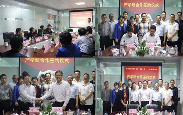 16日下午,刘宁一行又参观了校友企业深圳市保身欣科技电子有限公司的企业车间,对他们的新型产品健康一体机进行测试与演示。参观结束后,校企双方有关领导出席了产学研合作签约仪式。