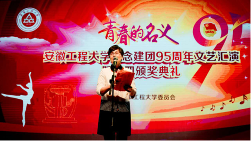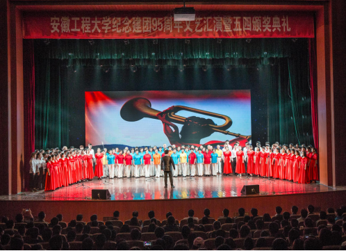 5月3日下午,师生活动中心大礼堂,“学习习近平总书记重要讲话 做合格共青团员 以澎湃的青春行动喜迎党的十九大胜利召开”的横幅格外醒目,我校纪念建团95周年文艺汇演暨五四颁奖典礼隆重举行。校党委副书记苏国红以及党委办公室、宣传部、学工部、研工部、基金会秘书处、校团委主要负责人、各学院党委分管共青团工作领导以及共青团干部、团员青年代表1300余人参加大会。安徽合力股份有限公司副总经理周峻等嘉宾应邀出席并为获奖者颁奖。