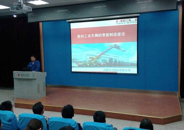 当天下午,安徽合力股份有限公司研发部部长助理、试制车间主任韩志刚教授级高级工程师,在5J117作了题为《面向工业车辆的智能制造建设》的学术报告。机械学院师生200余人聆听了报告。报告会上,机械专业教师就面向工业生产的智能制造建设及产学研合作等问题与韩志刚进行了探讨和深入交流。