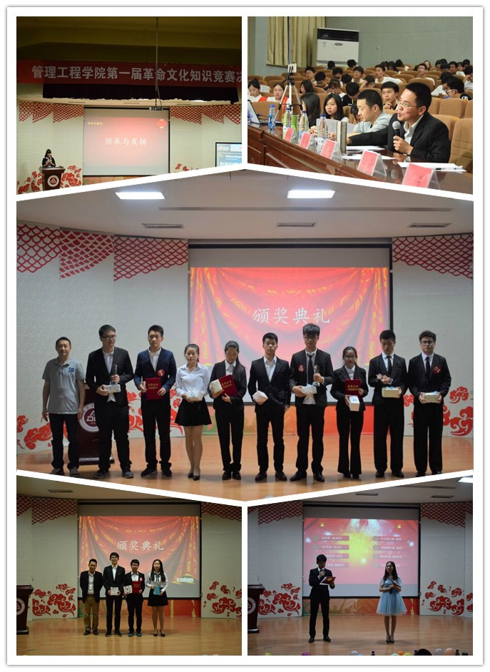 2016年,习近平总书记在“七一”讲话中指出“中华优秀传统文化、革命文化和社会主义先进文化,积淀着中华民族最深层的精神追求,代表着中华民族独特的精神标识”。为在大学校园弘扬革命文化、引导大学生学习革命文化,由校团委主办、管理工程学院承办的第一届革命文化知识竞赛于5月15日晚在学术报告厅进行了决赛。马克思主义学院副教授李海涛、纺织服装学院团委书记李校林、人文学院团委书记黄江胜担任比赛评委。学院党委副书记黄炜、团委书记及辅导老师观看了比赛。