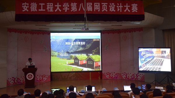 经前期大力宣传,学生报名踊跃,积极提交作品,经评委初评,进入本次决赛的共有9个团队。各团队代表依次登场,现场展示他们精心制作的网页,向大家介绍他们制作网页的理念、构架和采用的技术。评委团从网站页面的美观性和实用性等方面进行评分。而参赛选手的主页设计更是各有千秋,有的以精美细致为核心,简约大气;有的以色彩绚丽为特点,给人视觉上的冲击;有的以方便快捷为主,提供最高效的搜索引擎。经过一个多小时的激烈比拼,最终,7号代表队来自计算机与信息学院的团队,以其IT资讯分享与用户交互创意荣获最佳创意奖;3号代表队来自艺术学院的团队,以专业的艺术设计理念和娴熟的色彩图案搭配制作技巧荣获最佳制作奖;9号代表队作品以完善的后台功能,整洁大方的前台商务风格界面,丰富的框架技术应用,荣获一等奖。