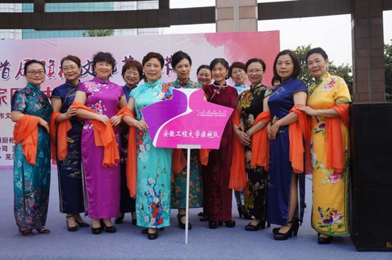 我校旗袍协会是今年三月份刚成立一支年轻的队伍,可队员的年龄并不年轻,最大近70岁,最小也是50岁之上。为了能以最美的姿态参加5·20市旗袍文化艺术节,展现我校女教职工的最好最美的高雅风采,所有的队员不遗余力、积极投身于行走排练之中,大家利用晚上和休息时间练步伐学动作,排练后还通过训练视频相互切磋相互学习。音乐在排练场所一遍又一遍响起,认真在每人脸上一遍又一遍绽放,功夫不负有心人,我校旗袍队作为在芜高校唯一的展示团队在活动中表现优异,广受关注。
