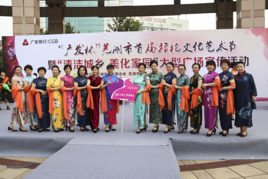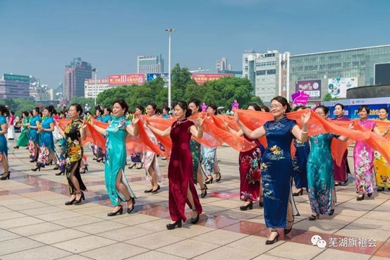 展女性东方神韵,扬社会正气和谐。5月21日上午,由芜湖市妇女联合会、芜湖市文委主办,芜湖市旗袍协会承办的芜湖市首届旗袍文化艺术节暨“清洁城乡美化家园”大型广场宣传活动在美丽的鸠兹广场举办。芜湖市市委常委、宣传部部长段玉嘉,芜湖市委副秘书长、市文明办主任窦德长,芜湖市妇联主席陈怡等领导出席本次活动。我校旗袍协会应邀参加,来自芜湖一市四县29只代表队共521名旗袍爱好者参加本次活动。
