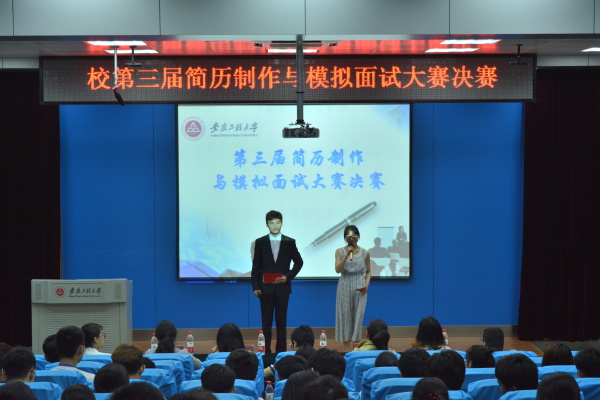 经过初赛“简历制作”、复赛“无领导小组讨论”两个阶段的选拔和比拼,最终来自机械与汽车工程学院、电气工程学院、生物与化学工程学院、管理工程学院、艺术学院、外语学院的12位选手闯入决赛。决赛分为PPT个人展示、情景模拟、评委提问三个环节。在PPT个人展示环节中,通过层层选拔而入围的12位选手们对自己进行了详细的介绍,为了能让评委们对自己留下深刻印象,每个选手的展示都极富个性张力,充分展现了学生青春的朝气和对应聘职业的充分认知;情景模拟环节,选手通过随机选取题目进行现场回答,参赛选手经过认真思考,结合自己的个人特质进行作答,这充分考验了选手临场应变能力及逻辑思维能力;评委提问环节,针对选手个人简历和现场表现,运用压力面试、行为面试、能力面试等方法,考查了选手对应聘职位的了解、临场应变能力、抗压能力等,评委与选手的热烈而又充满启发性的互动赢得在场观众的阵阵掌声。