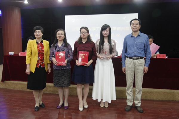 接着,王河宣读了2016年度工会系统省级、校级工会工作受表彰的先进集体(个人)名单,苏国红和凤桦为获奖省级工会系统表彰的获奖代表颁奖。王河、张寅红为获得学校工会系统表彰的获奖代表颁奖。
