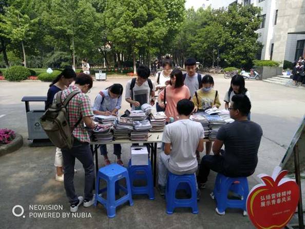 文澜读书社全体社员在活动前期进行了大量的期刊登记活动,为活动奠定了良好的信息基础,使得活动成功举办。赠送活动从一开始就非常火热,现场来领书的师生络绎不绝,喜欢文学的同学找到自己喜欢的《小说月报》、《收获》、《诗歌》,喜欢体育的读者领到了《足球》、《游泳》、《网球天地》,走在时尚前沿的同学选择了《时尚芭莎》、《服饰与美容》等。
