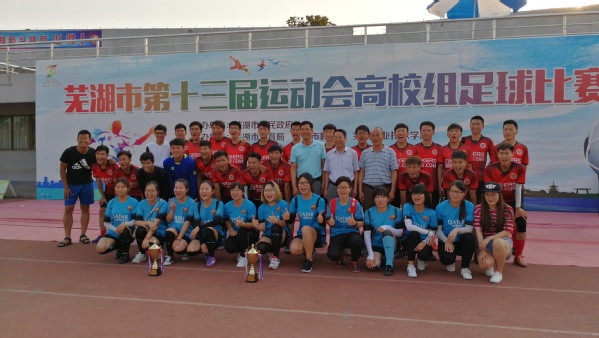 此次芜湖市第十三届运动会高校组足球比赛于5月20日至26日在芜湖职业技术学院举行。作为芜湖市首次增设的高校组女子足球比赛,也是芜湖市第十三届运动会高校组体育赛事的首个比赛项目,我校女足的健儿们在赛场上充分展现出了敢打敢拼,勇于发挥的良好精神风貌,以两战全胜的战绩获得了冠军,为我校市运动会体育代表团斩获首金。