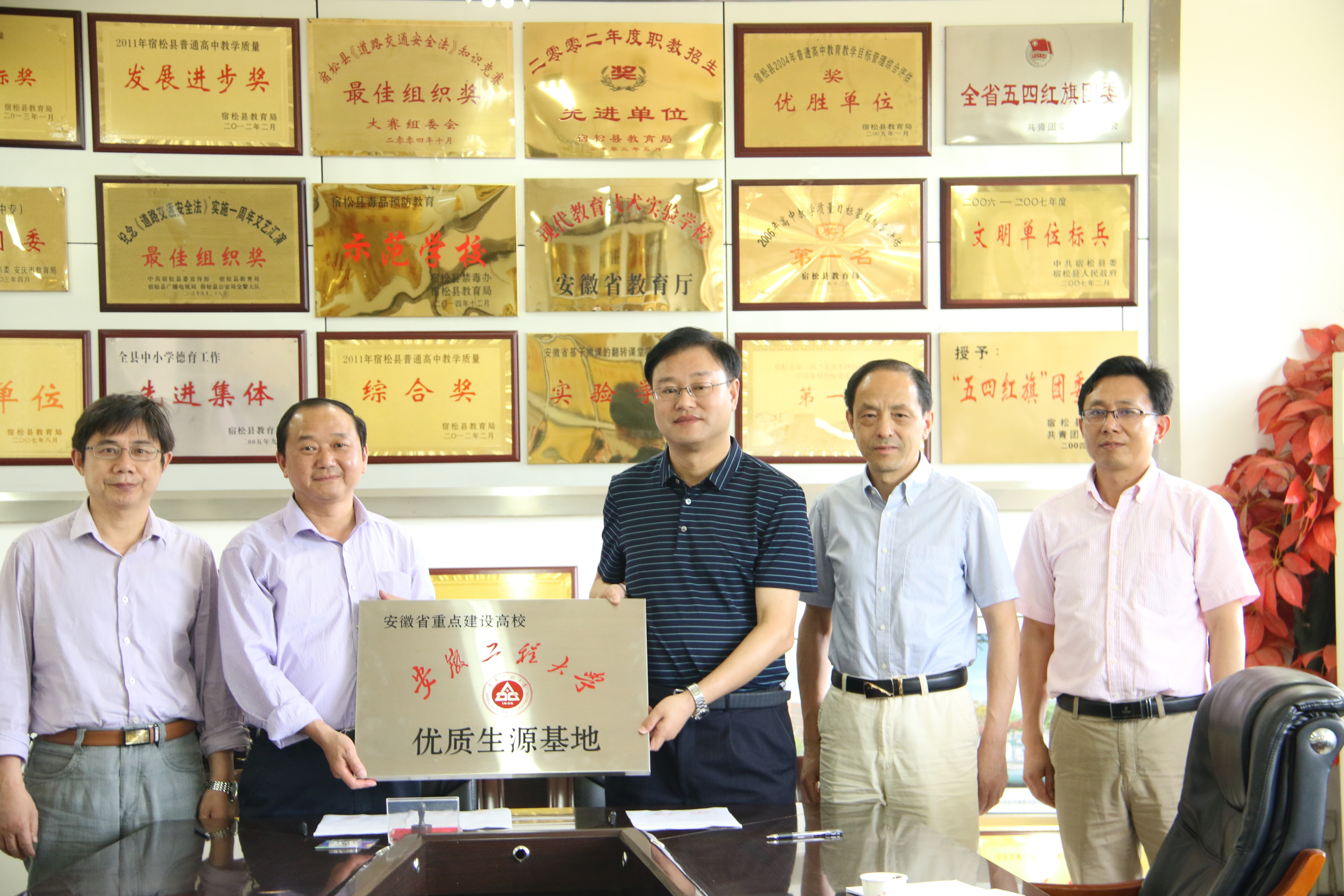 5月25至26日,副校长叶常林带领管理工程学院党委书记汪张林一行四人到望江二中、宿松中学开展优质生源基地共建工作,并同两校签署合作协议、举行“优质生源基地”授牌仪式。