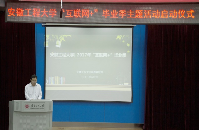 6月12号下午,安徽工程大学2017年“互联网+”毕业季主题活动启动仪式在5教117教室举行,来自全校131个毕业班的同学代表参加活动。校党委副书记苏国红以及组织部、宣传部、学工部、研工部、校友会秘书处、校团委、马克思主义学院和关工委等牵头承办单位负责人出席活动。启动仪式由校团委书记冉昆玉主持。