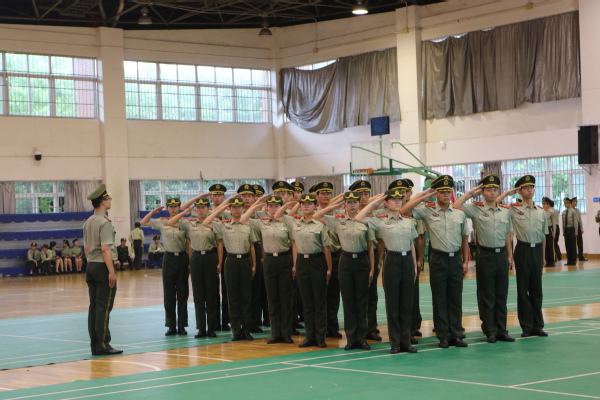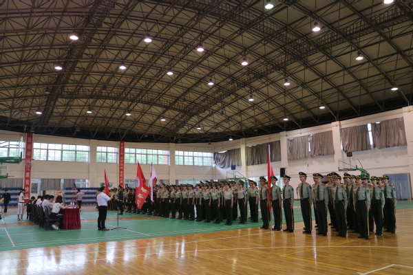 队列展示活动后,四所高校的国旗班排着整齐划一的队伍、唱着嘹亮的军歌,气势威武地来到设置于第一田径场南侧的主题桁架前合影留念。